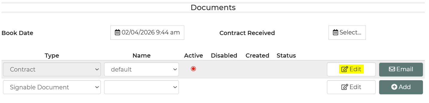 You can customize a contract for a particular event without modifying the entire Contract Template. Click "Edit" on the Documents tab of a lead. You’ll want to choose the template to start with from the drop-down.