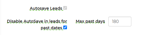 You can also control auto-save on past-dated leads. If the event date exceeds the allowed past days, auto-save for the lead is disabled; if within range, a confirmation dialog is shown. The maximum past days is the number of past days for auto-save in the lead.