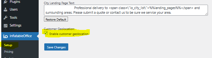 - In WordPress Admin, open the IO/InflatableOffice plugin’s Setup (Admin Options) page.