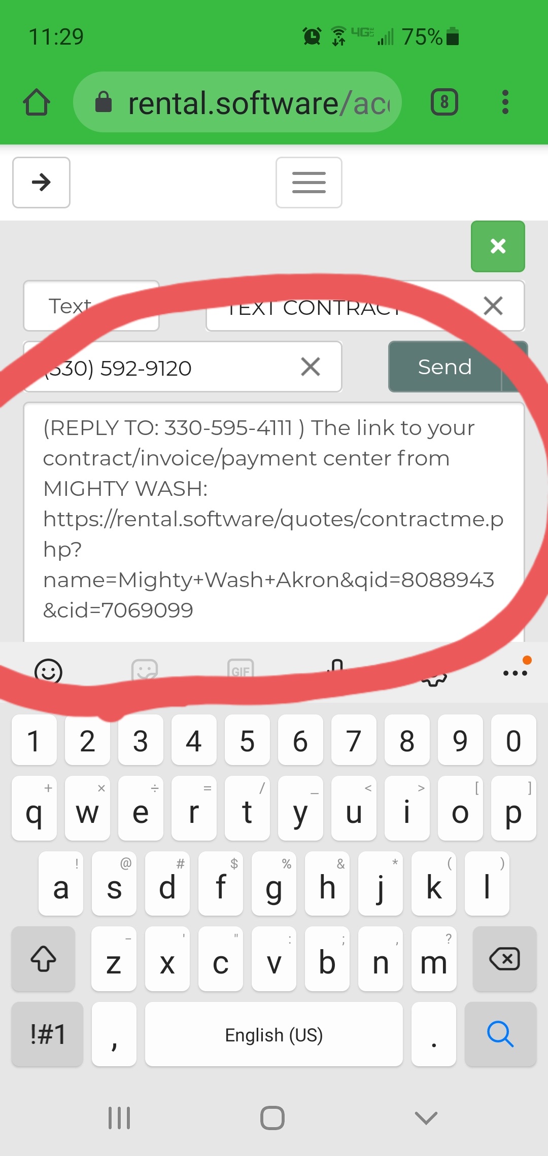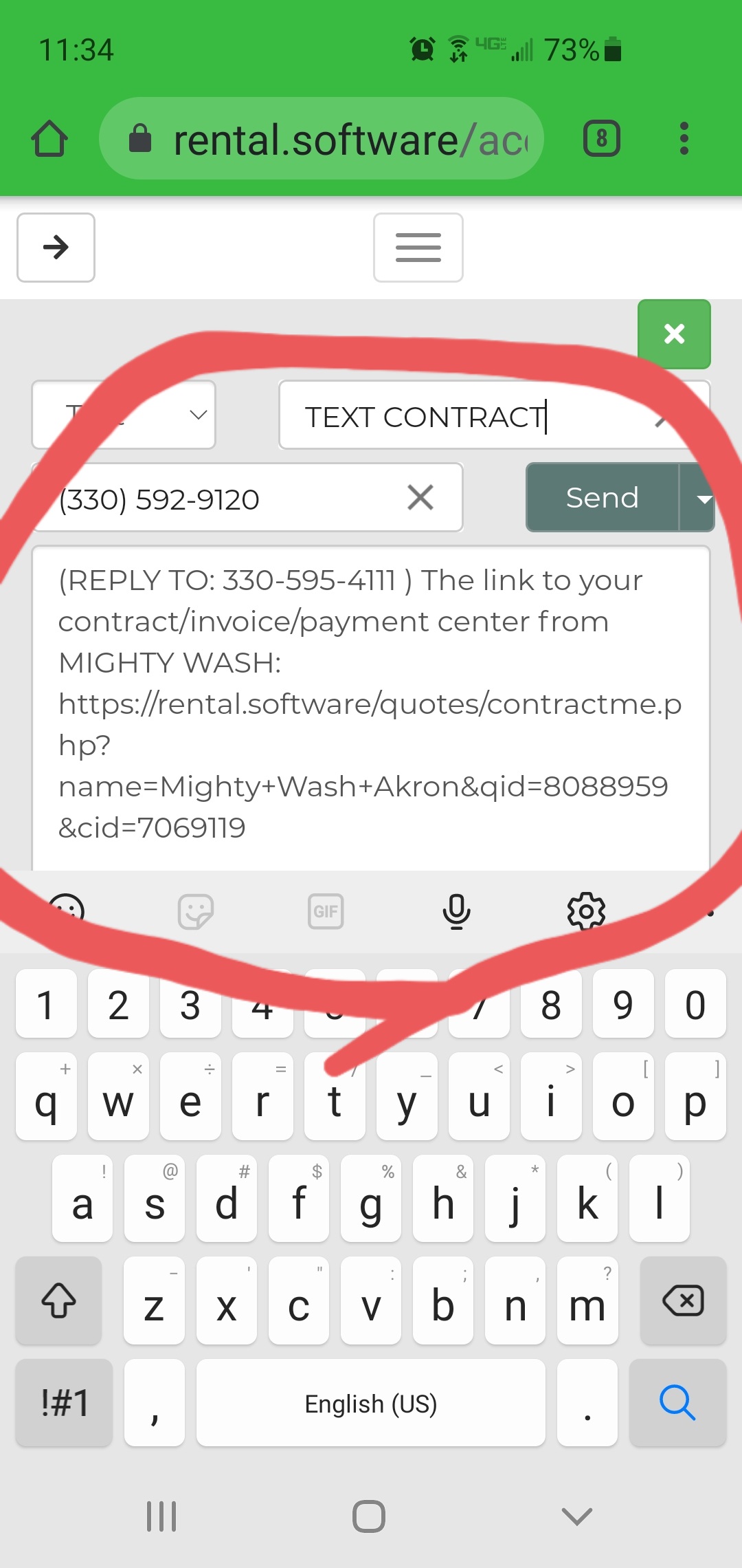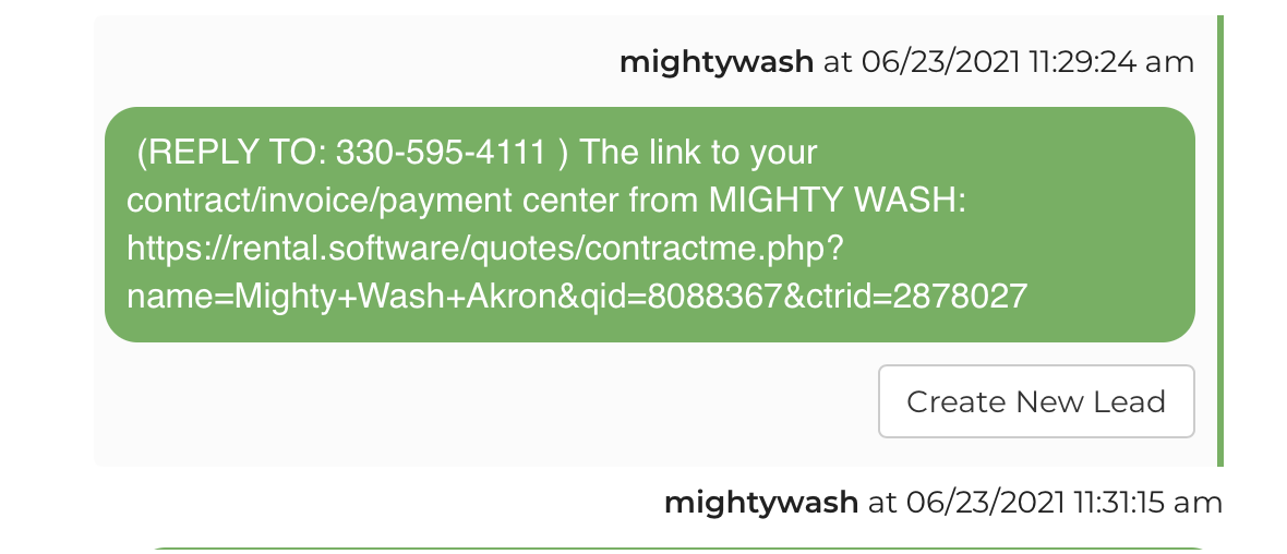 However, every time I send the TEXT CONTRACT link, it appends an "@" symbol to the text message and it is an invalid link. If I send the TEXT QUOTE link (also via text, IO PHONE), it does not append this extra "@" symbol.