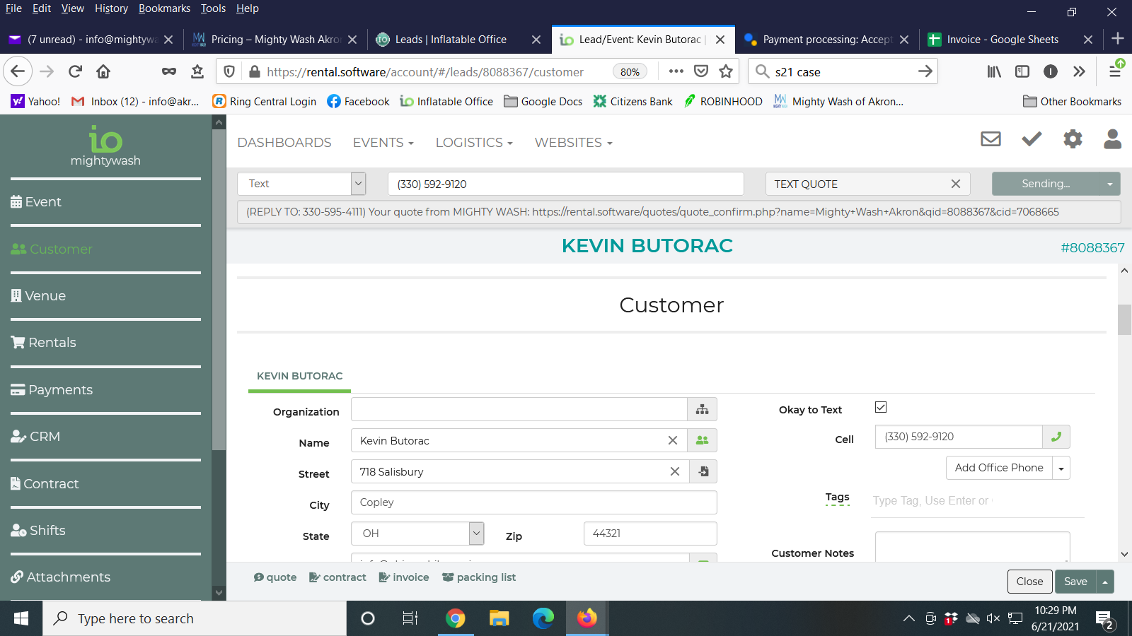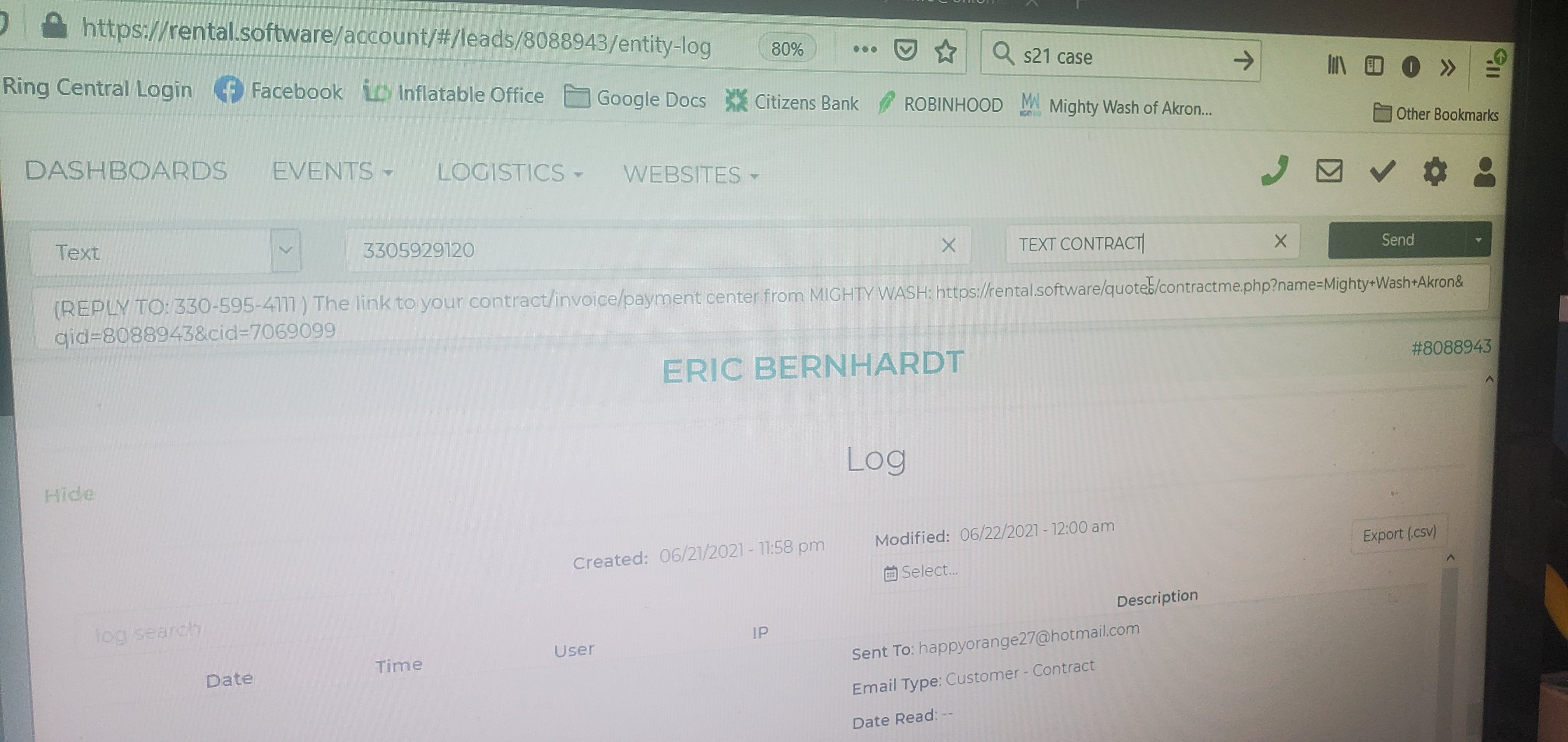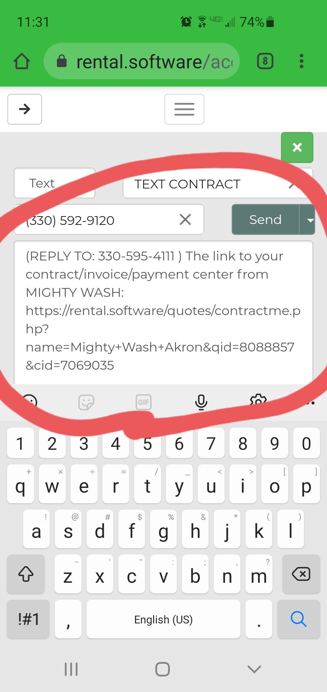 However, every time I send the TEXT CONTRACT link, it appends an "@" symbol to the text message and it is an invalid link. If I send the TEXT QUOTE link (also via text, IO PHONE), it does not append this extra "@" symbol.