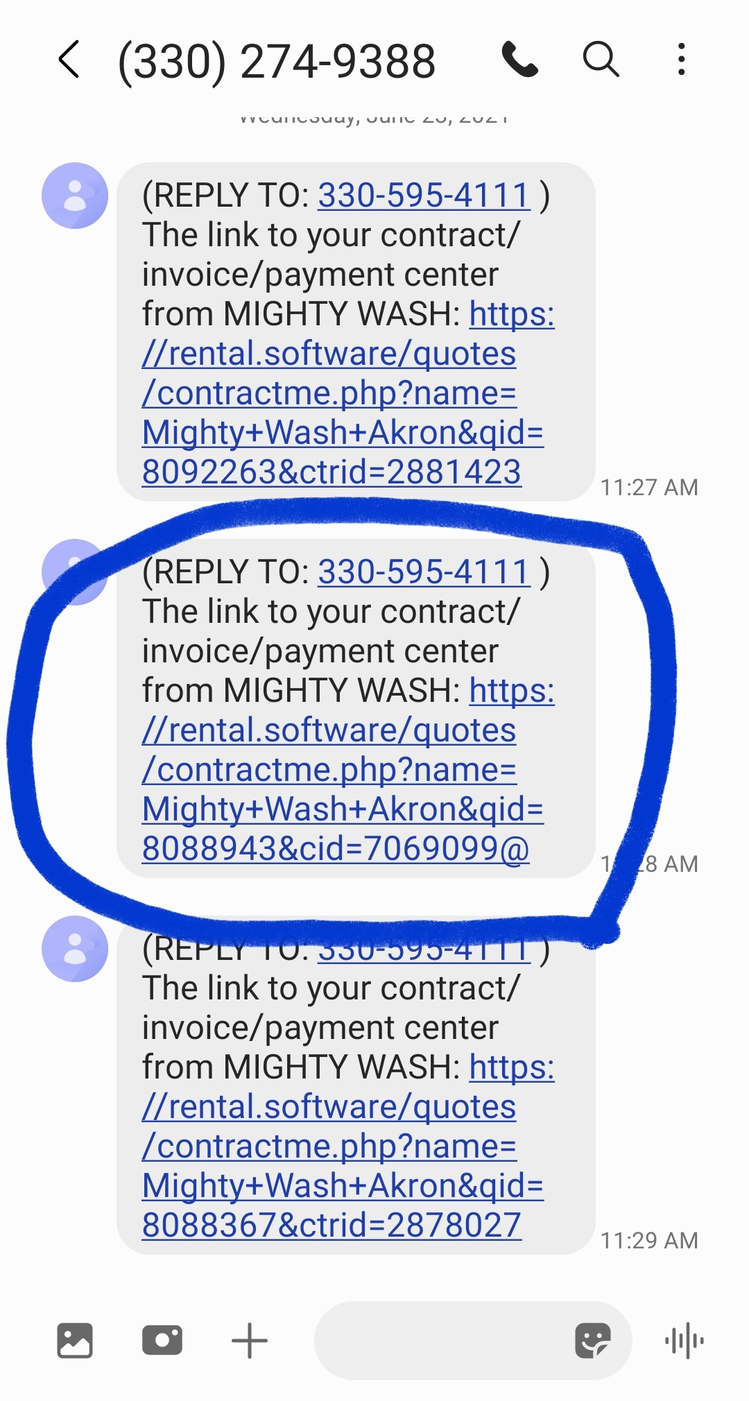 Last night around 12am we sent about 20 texts from various leads to our cell, 3308085794