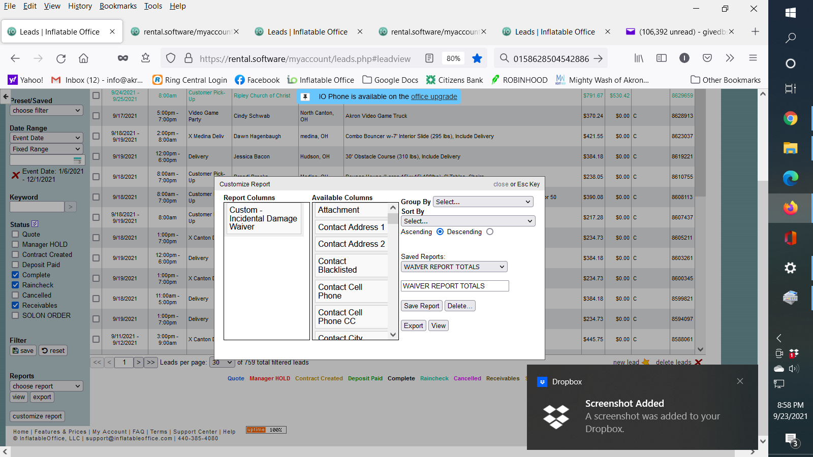Per Tim's response to an old request we made, we tried to run a report showing the total $$ collected from Custom Field- Incidental Damage Waiver...but it just shows a 'yes' or 'no'. For sales commissions, tax purposes etc we need these to be totaled in a sortable report. How can it be done?