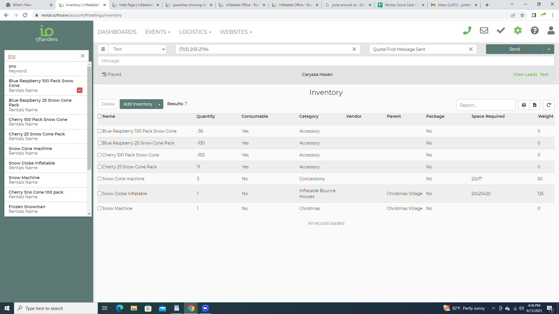 all four of our sugar floss flavors show a positive inventory when you click on them for the number on hand. But then another place they show a deficit and it is showing up as unavailable for quotes, leads, etc.