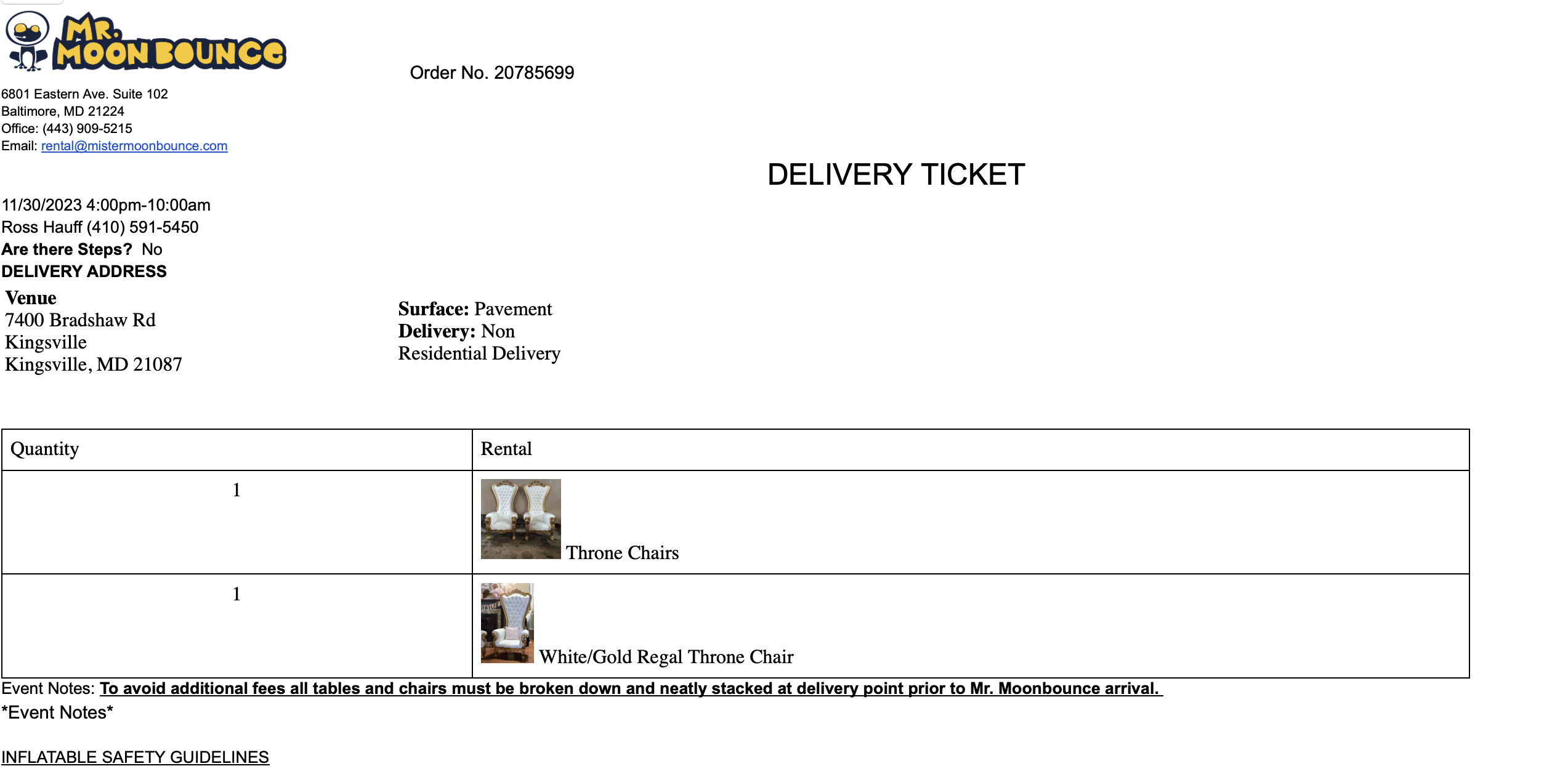 We would like to replace the "Packing List" document with the attached Delivery Ticket. We would print this out for our delivery team to get signed while onsite at each event.
