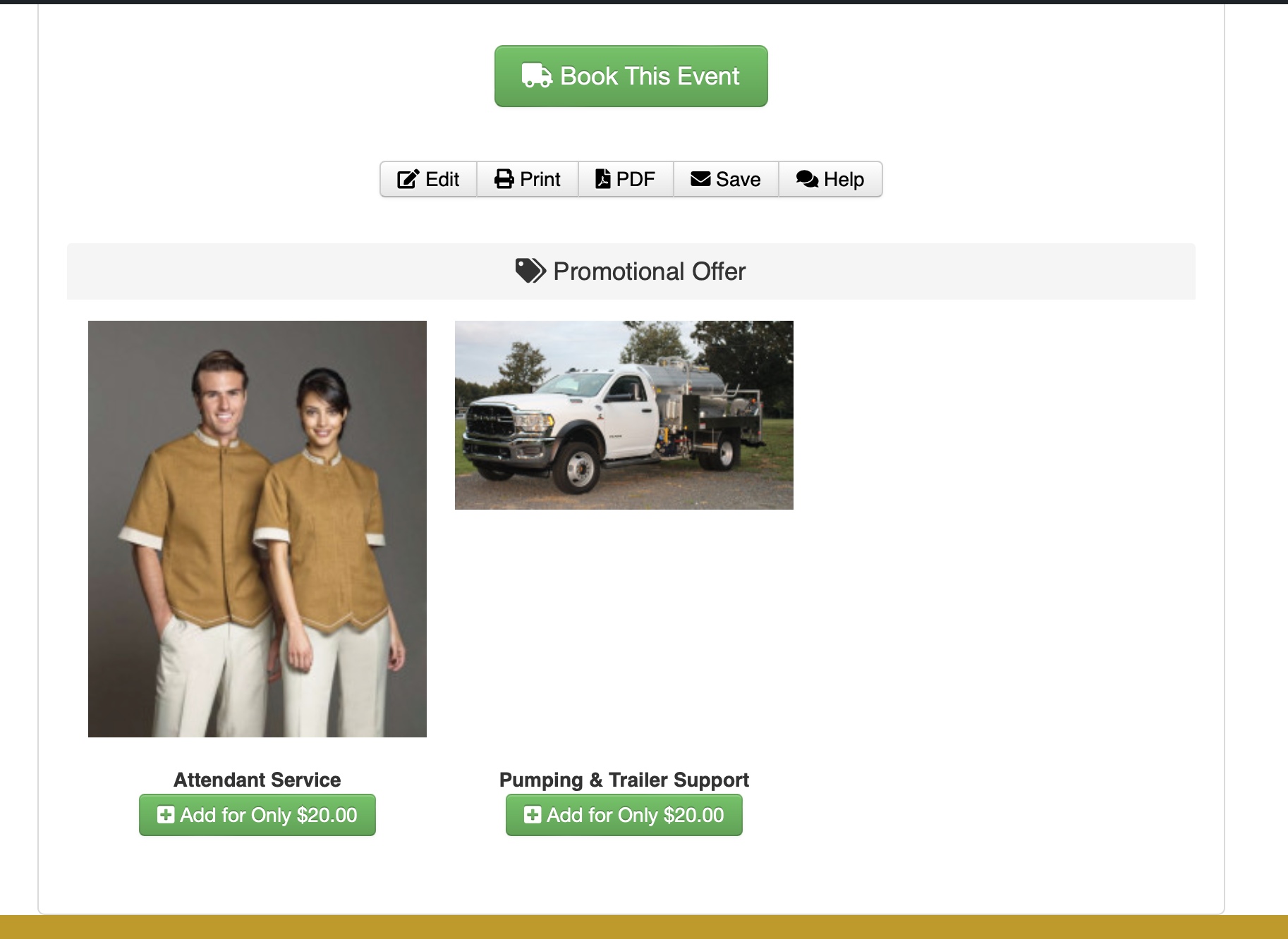 I was looking at a quote and at bottom are accessories for the item it say add for only $20. The price the Attendant Service is $75/hour and the Pumping service is $375 why is this showing that way?