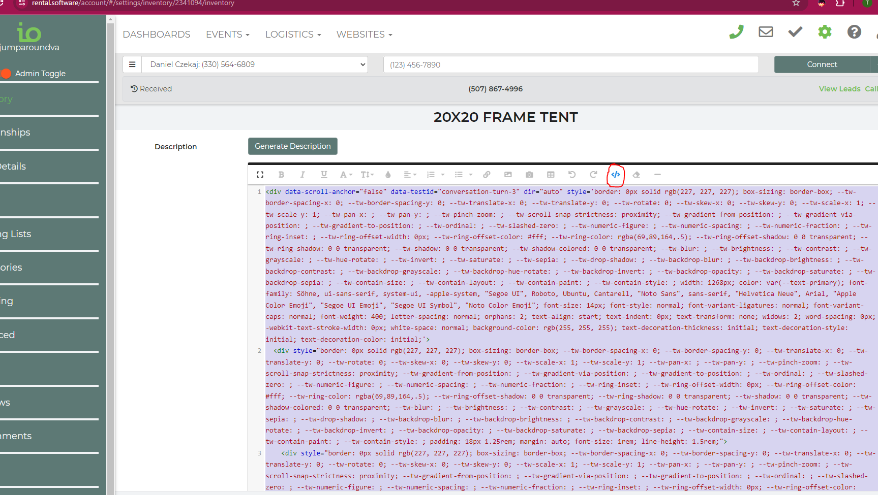 Attached are pictures from the 20x20 Frame Tent and TENT HIGH PEAK 20X30 FOOT's descriptions with code view enabled ~