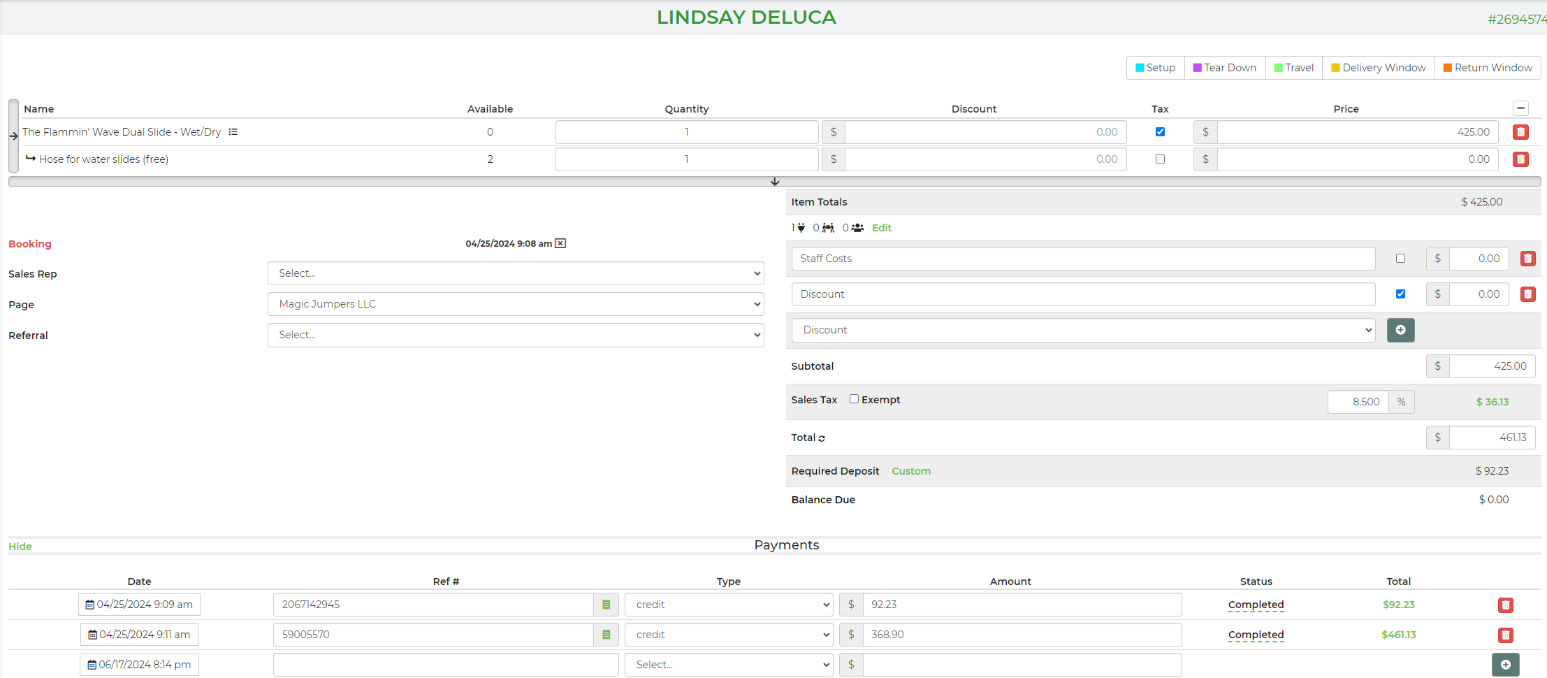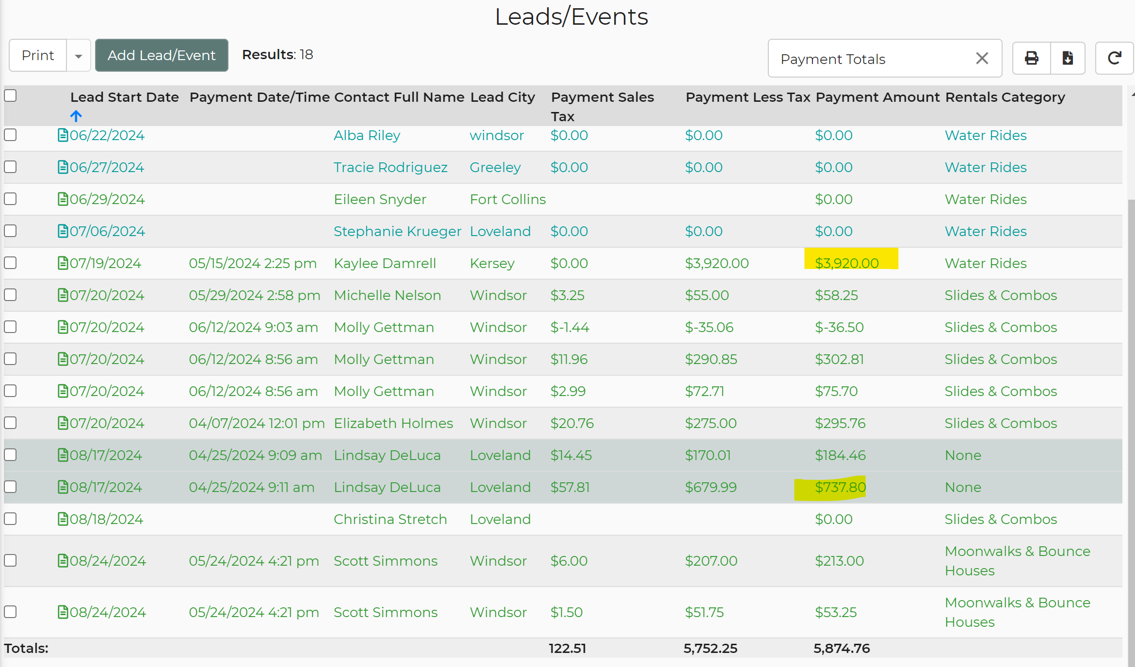 I set up a report with the goal being that I can see how much has been paid by a lead at any given time as well as the separation from the sales tax and the subtotal.