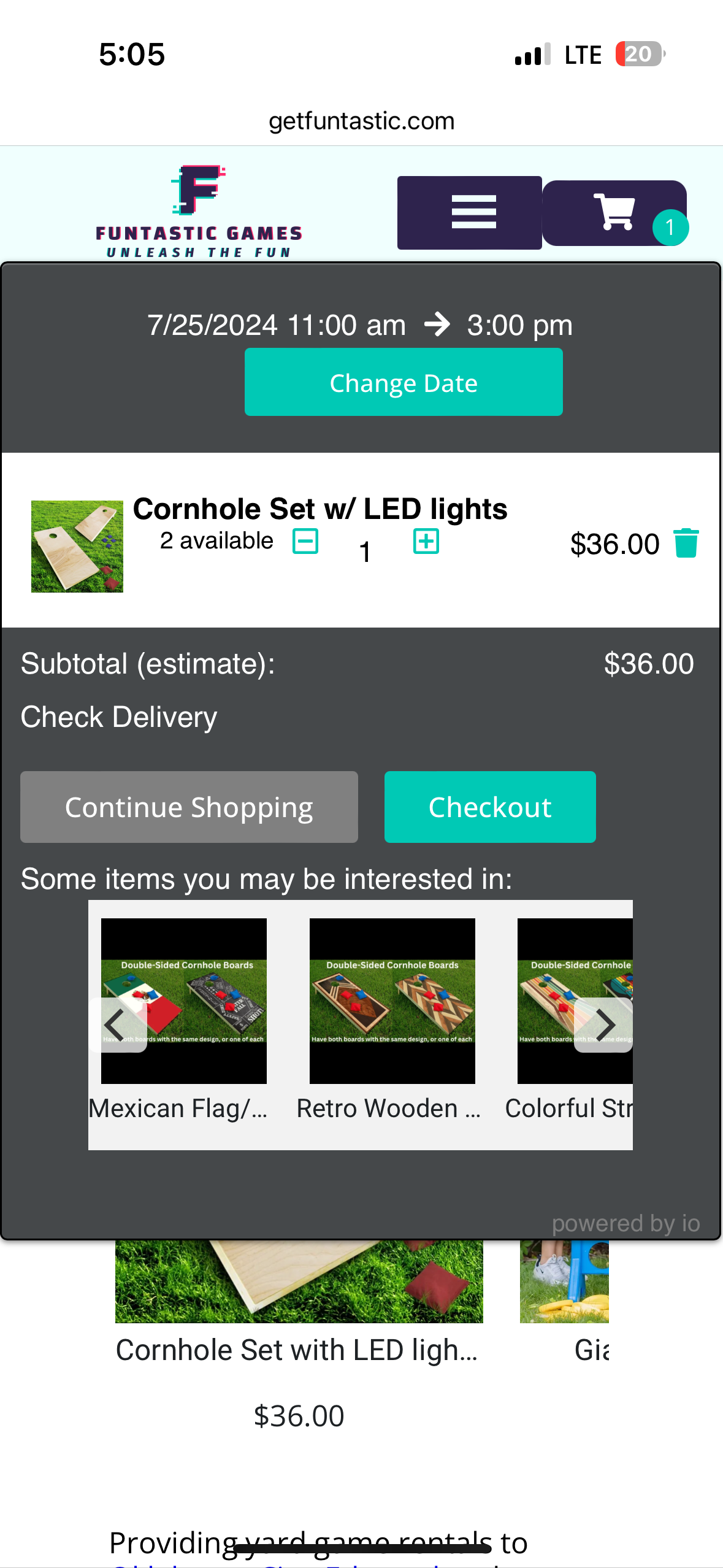 Example #1: adding cornhole set to the cart. In the second screenshot, no change was made, I only clicked “Checkout”