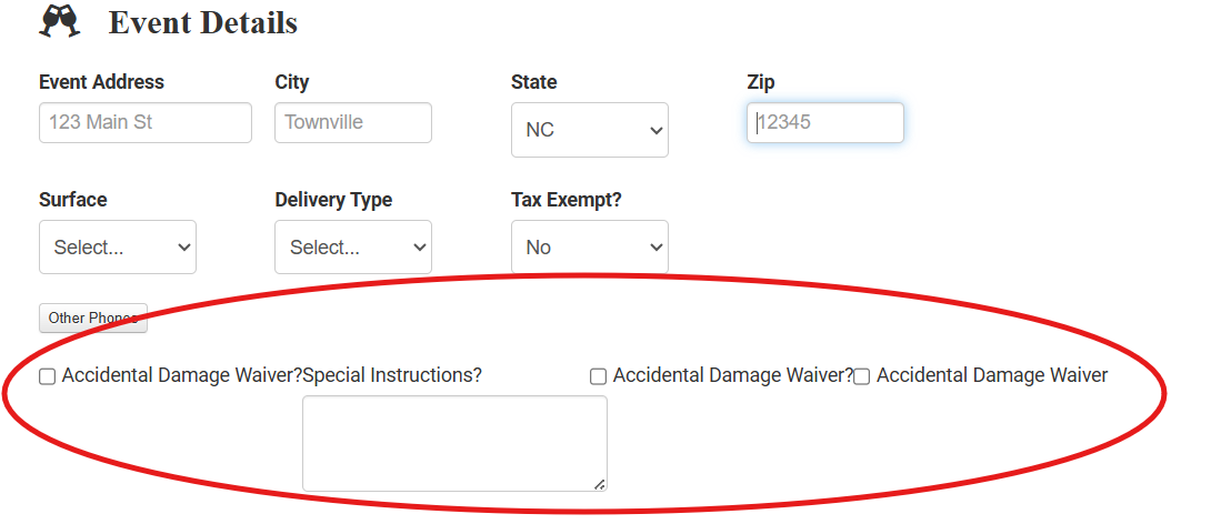 For the special instructions part I wanted it underneath the damage waiver