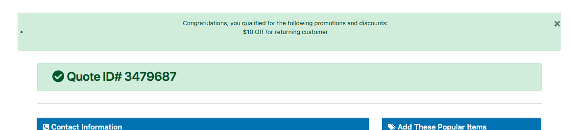 First attempt at a coupon code. The admin message comes up stating that the discount was successful but in the totals section at the bottom of the quote (front end for customer) and the back end in IO, the discount isn't actually applied