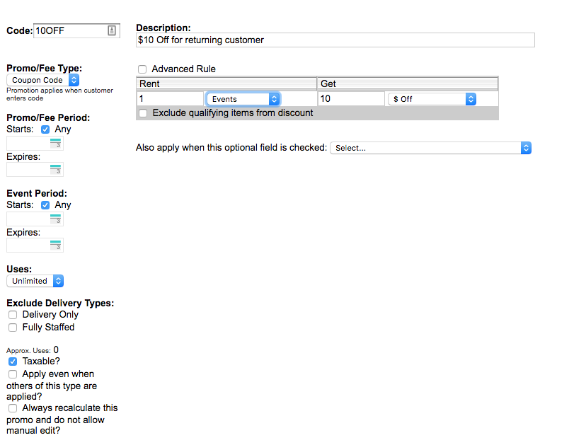 Change the wording from 999,999 times to 1 on the current coupon you have. This should fix it. This way it shows a customer only has to rent one time to then qualify for your coupon.