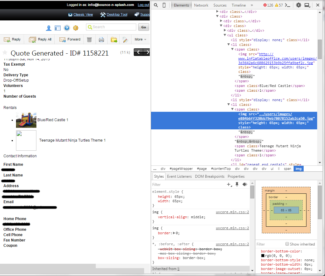 The rental images for our theme banners in accessories are not showing up on the quote confirm email we receive. It shows up as a broken link. It looks like it's linking "up" to a main directory and not directly to IO's directory like the other rental items' images do. I've attached a screen shot to show you better. Thanks!
