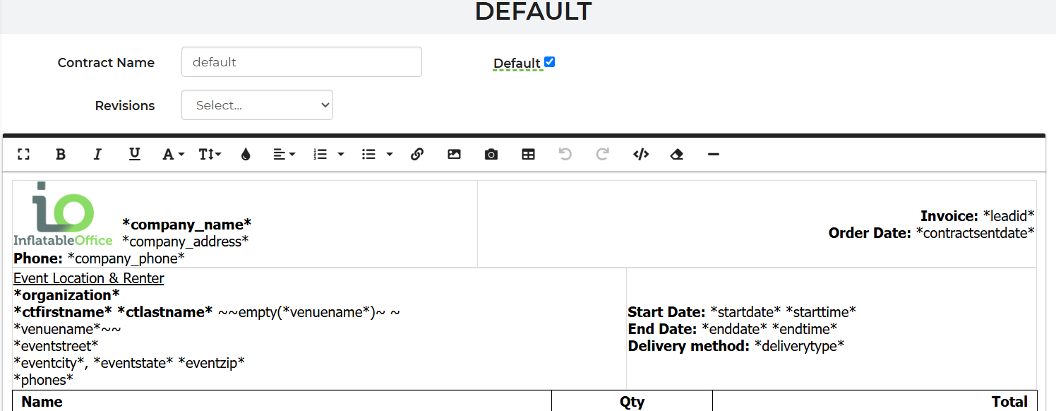The section that generates the list of rentals (with variable %rentalname%), has some special code in it so that it will print a list of the inventory. If you make major changes to this section, be sure to test the contract to make sure it still works properly.