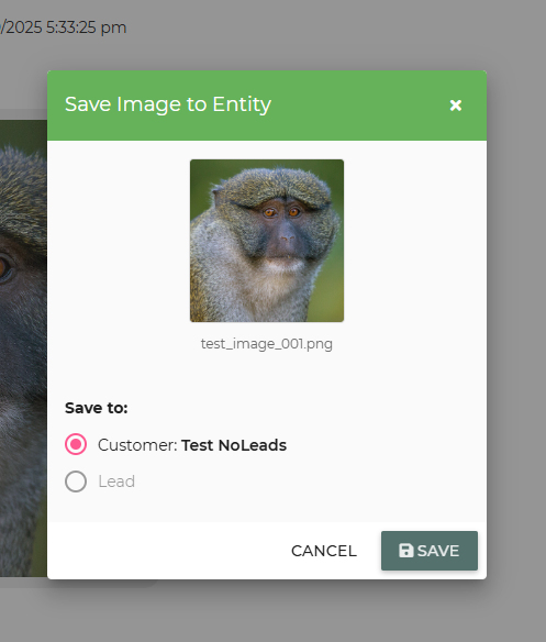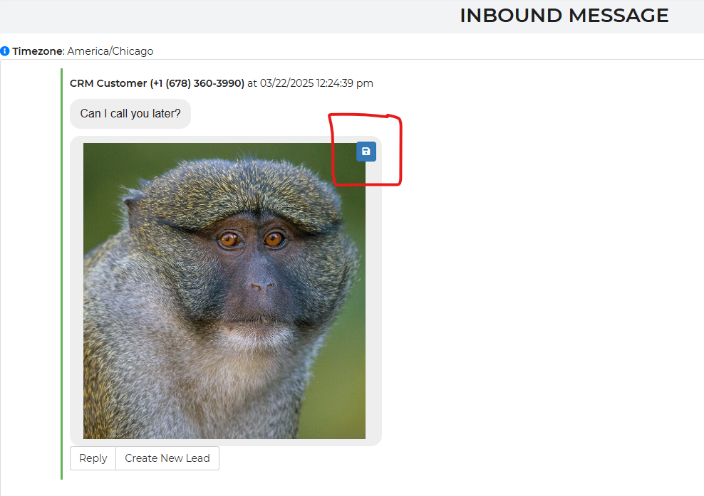 You are able to save any attachment from a text to specific to save attachments from text messages to an entity associated with that number. Particularly, an Organization, Customer, or Lead entity.