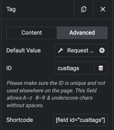 • Click "Advanced" tab under the "Tag" field on the Elementor form.