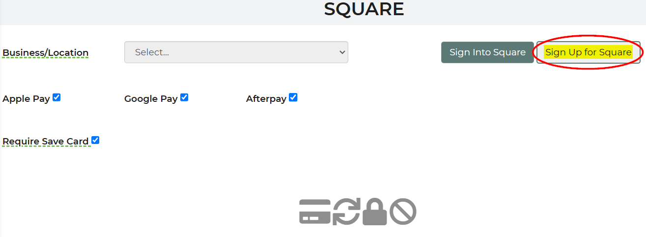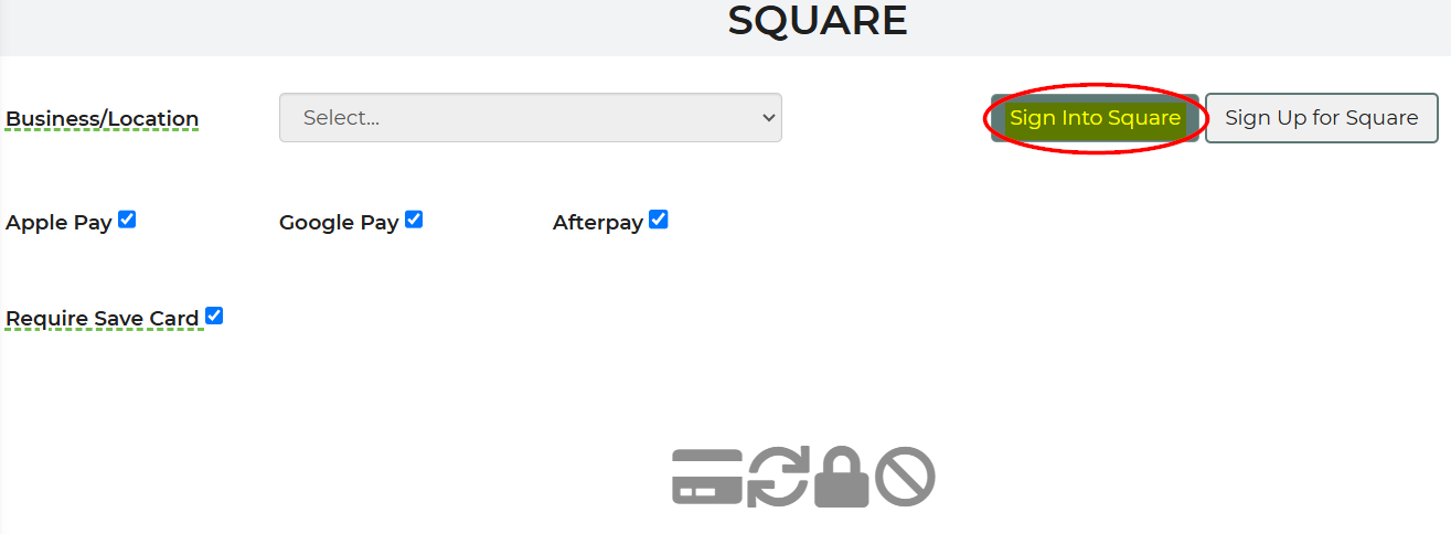 Setting up your integration with Square is simple. Click the Square option in Settings -> Merchant Services, select Square, and then choose the Sign into Square button.