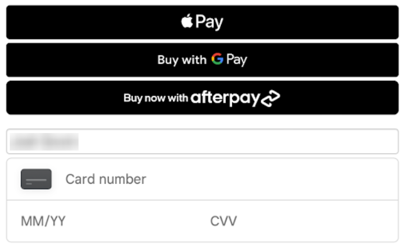 We now support Google Pay, Apple Pay, and AfterPay. The customer must be using a device and browser that supports these for them to show. Additional considerations for each service as well as a screen shot is listed below.