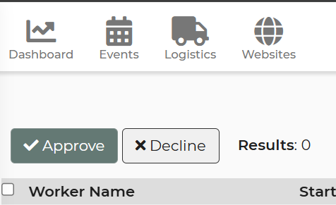 Step 3: Select the worker/workers you want to Approve/Decline by selecting the box next to the request on the left. Then Approve or Decline with the buttons above.