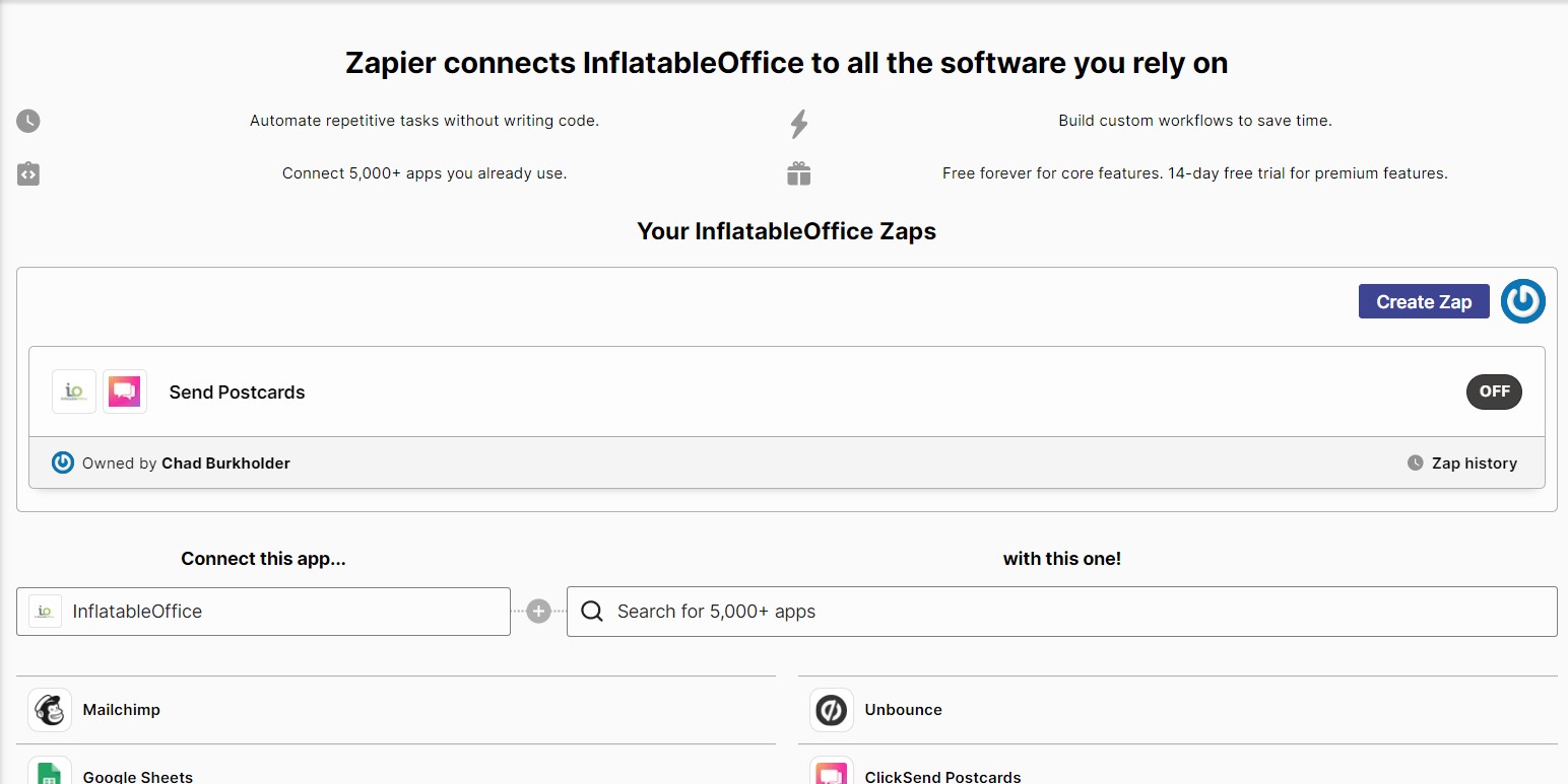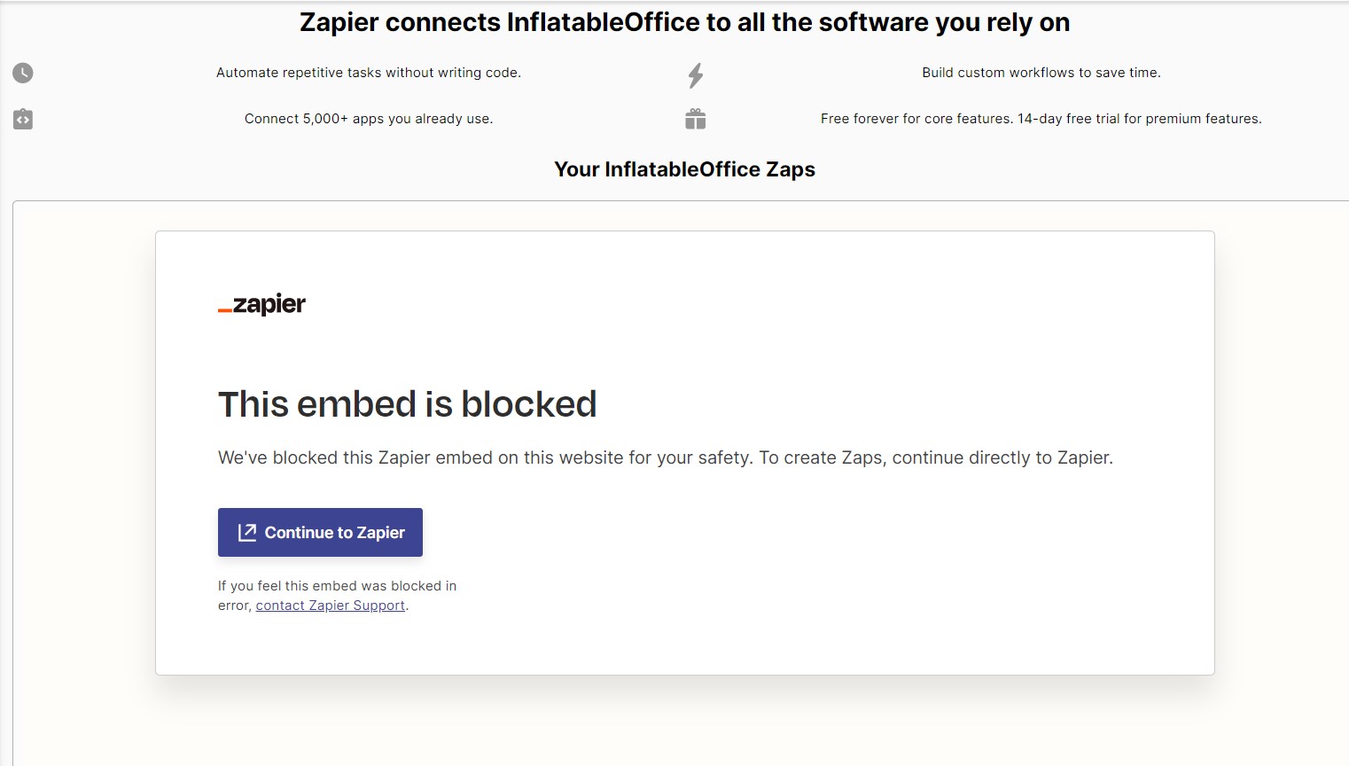 When I click on Zapier in the settings it tells me the embed is blocked. But when I use the link in the announcement it seems to be fine.