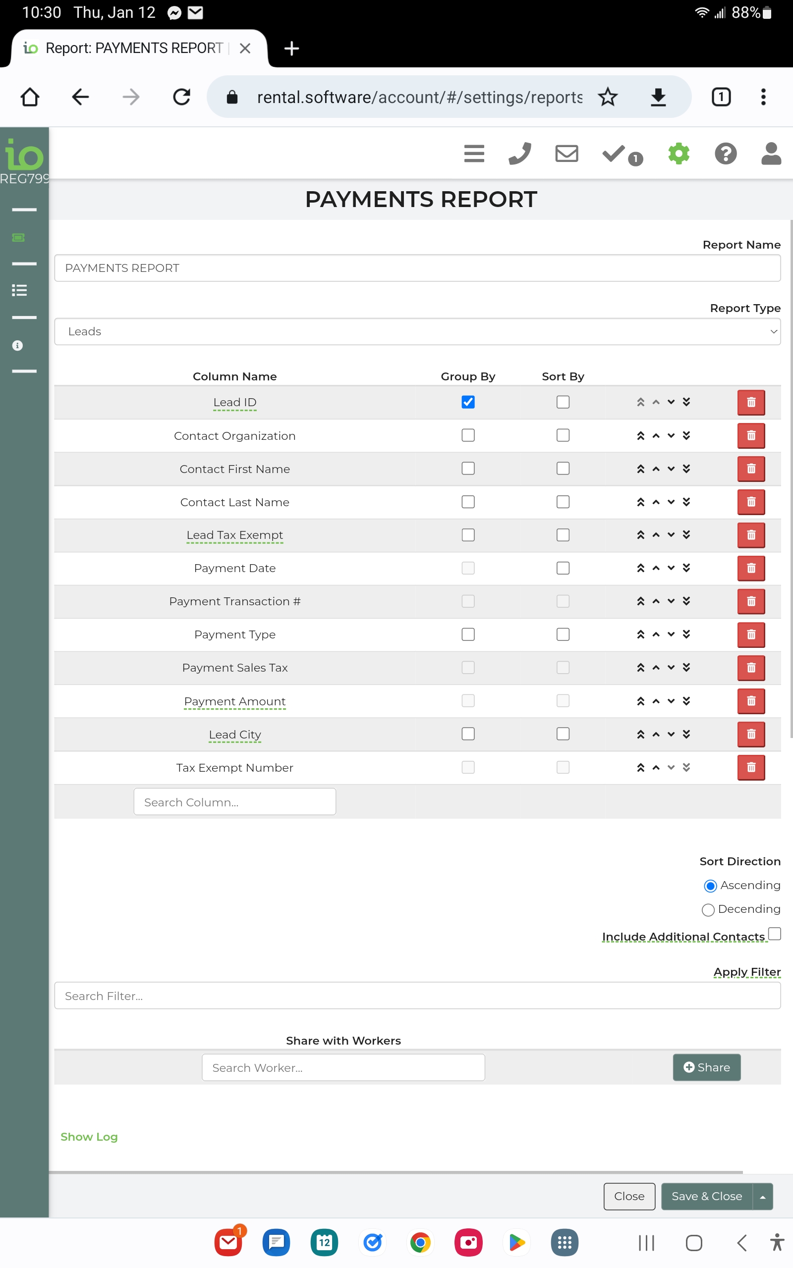 Here's an example of the report we use for sales tax breakouts once we use the report and laid it out then we go back to the main screen under events on the left menu pick payment date and pick the date that we want to look at the payments to show up in that report and also only the statuses that are reserved that way we only pay sales tax on stuff we've collected sometimes people make a payment six months in advance or 3 months after the event you don't want to pay tax on it before or after you need to that's why payment date filter is so important