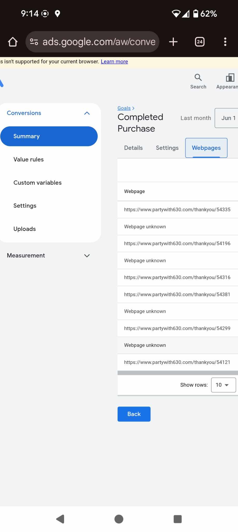 I've had to use google tag manager and google analytics to accurately track conversions.