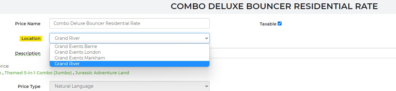I think I figured it out - when IO created this site, they used the wrong location. Was supposed to be Grand River Party Rentals, but it's set up under Grand Events Barrie.
