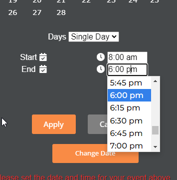 How can I eliminate customers from being able to book later than 6PM on a single day event?