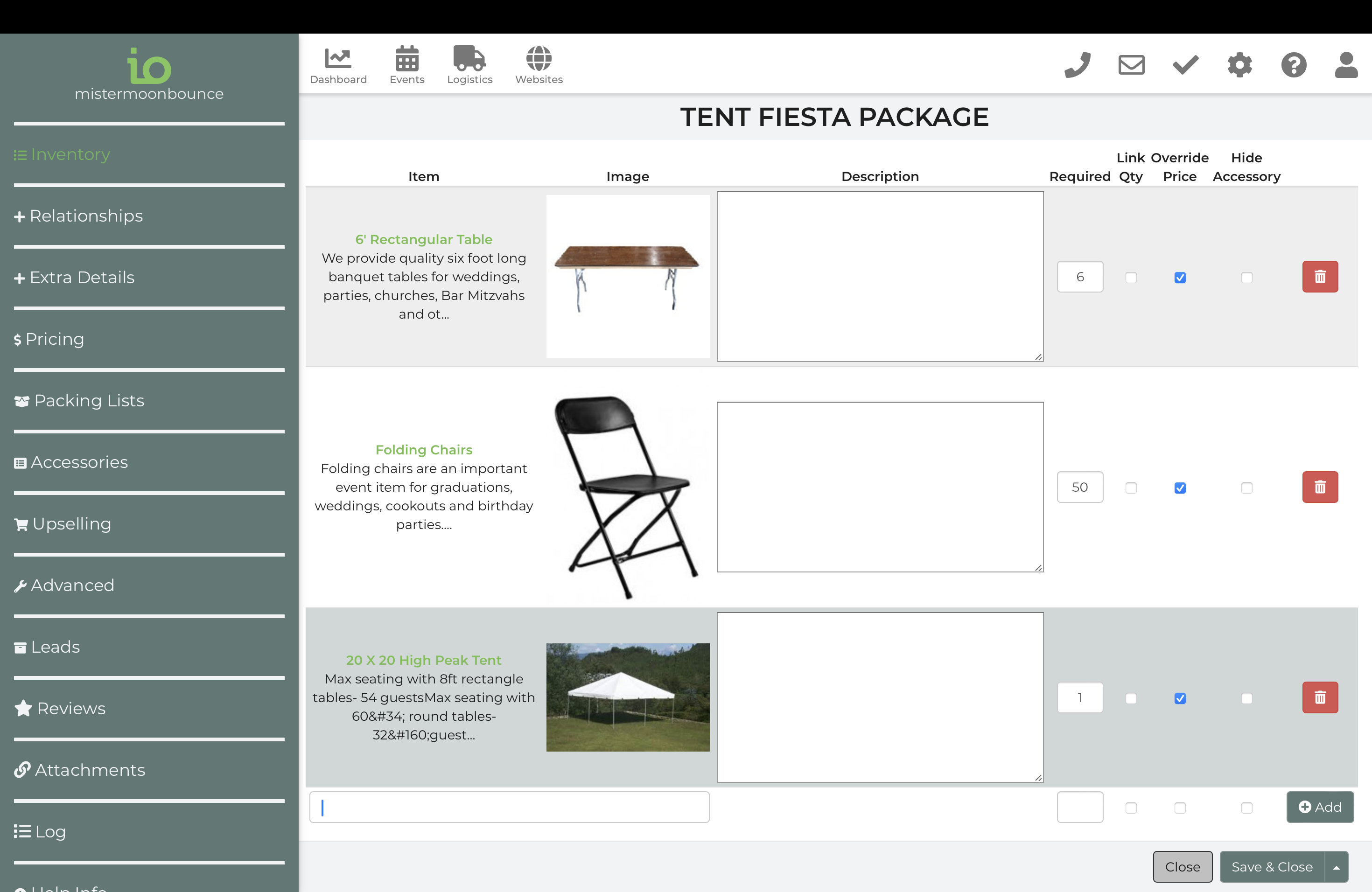 I have created a duplicate 20 x 20 tent item specifically for packages with the $95 tent fee removed as a required accessory. These items are linked so the quantity will reflect if one is rented. I set this all up and forced a sync on your website so it may take up to an hour or two to update, but if you notice this is not working as intended this afternoon or by tomorrow please let me know!