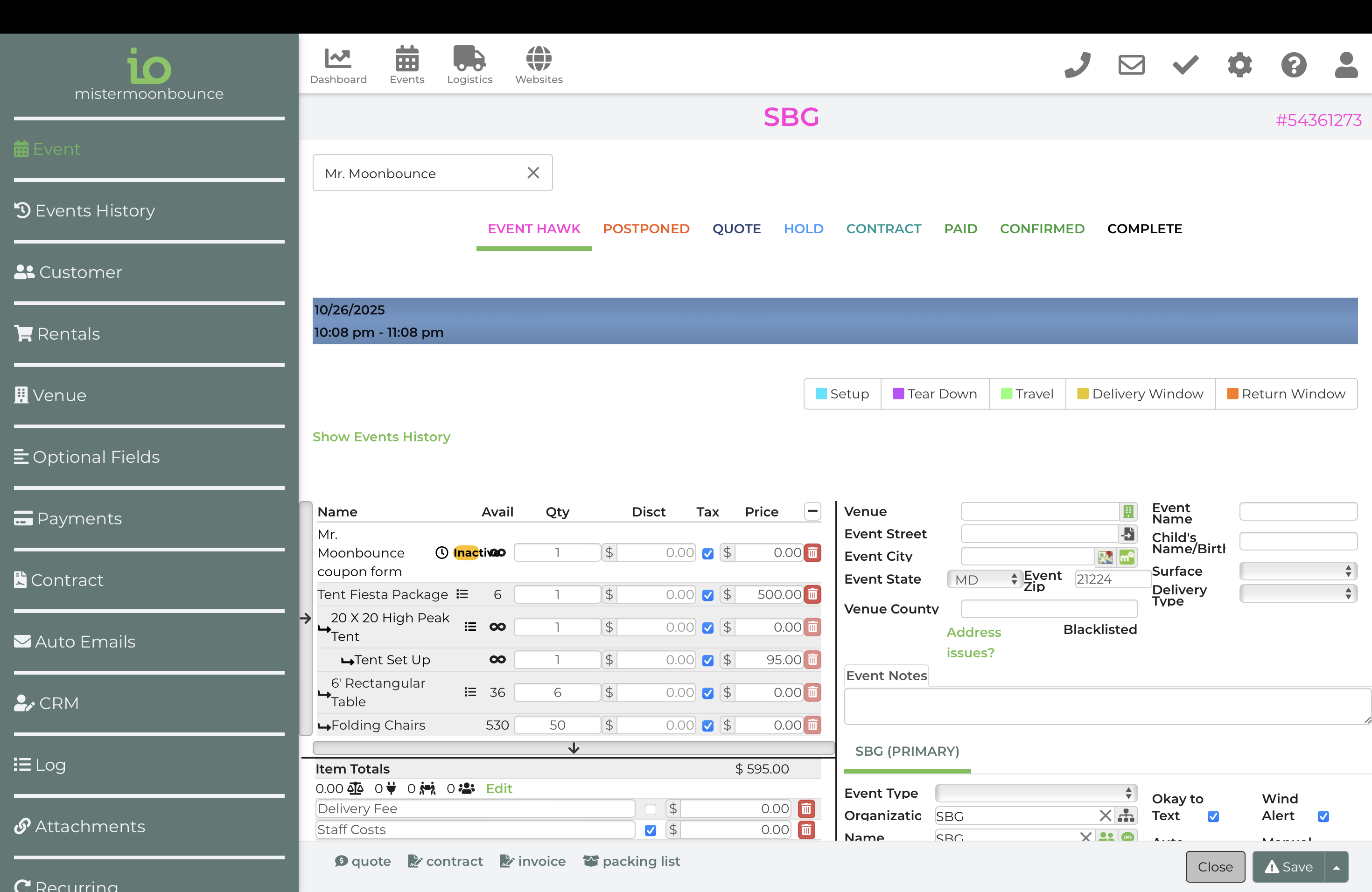 We just created a new tent package that includes a 20x20 tent that has a required accessory named "Tent Set Up" for $95.00.