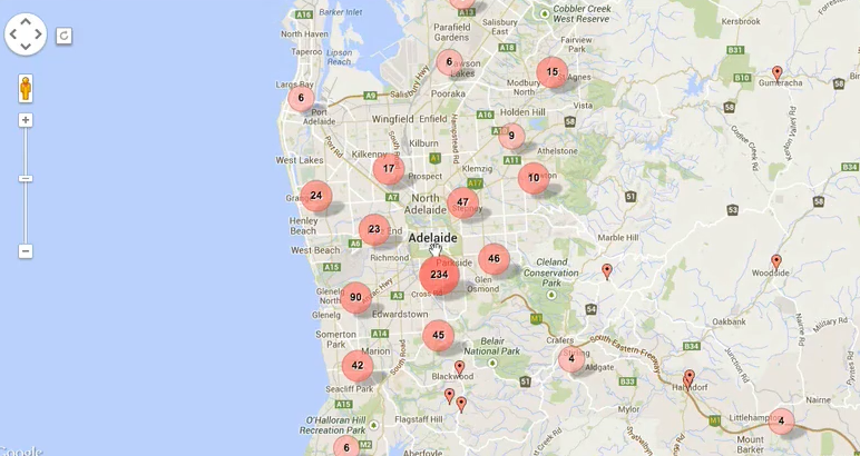 This is a good idea. I've added it to our list for the Dashboards page. In your example, what does each dot represent? The center of a zipcode? I'm wondering how they decided to group them together (I'm assuming the number in the dot represents multiple events in the area close to that "pin")