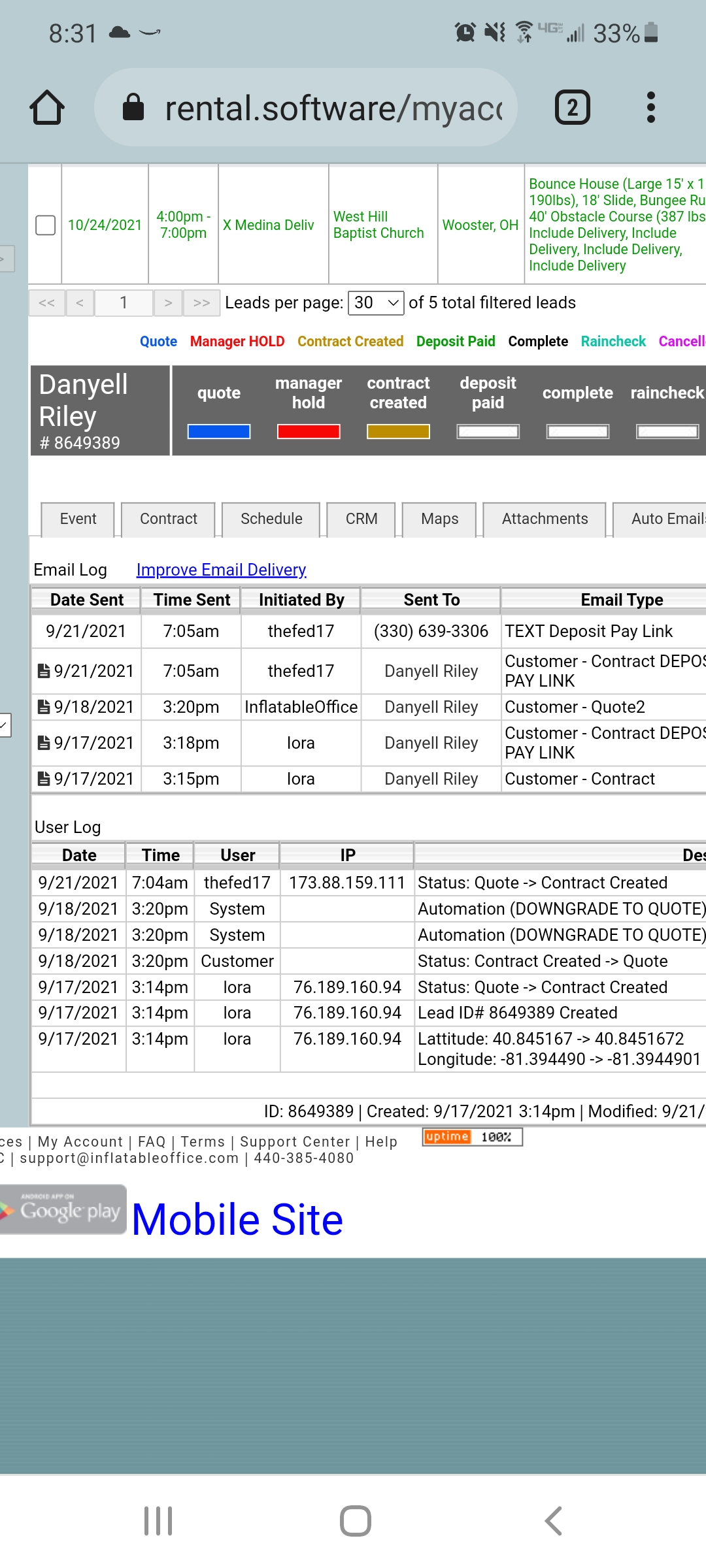 For some reason this lead did not automatically downgrade to a quote after 24 hours as it had previously as you can see in the Log. Please let us know what is going on.