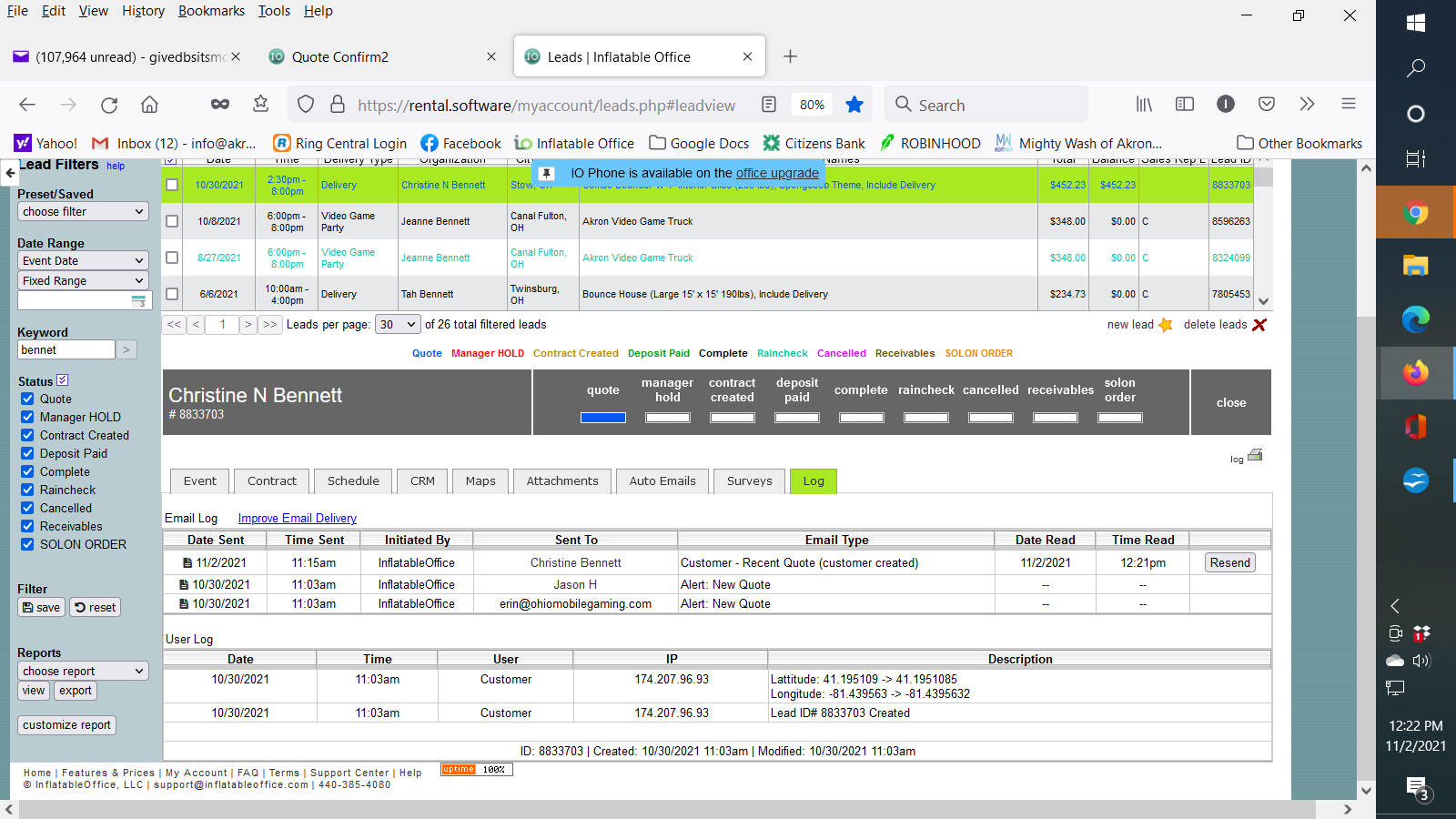 See attached logs...event was 10/30, quote reminder was sent 3 days after the event. Shouldn't the system be smart enough to know not to follow up for an event date in the past?