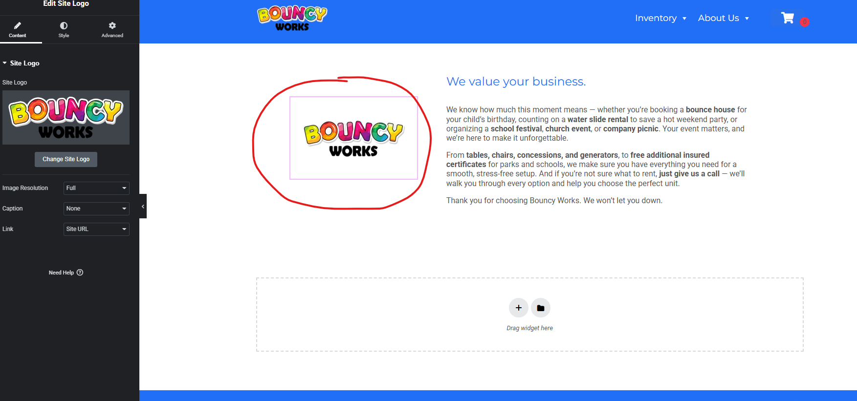 I want to change this image. it's our logo and when I go to change it to a picture it says "change site logo" I don't want to change all the logos. I just don't want the logo twice next to each other like that. If I click change site logo will that change all the logos? how do I replace that with an image only in that one spot.