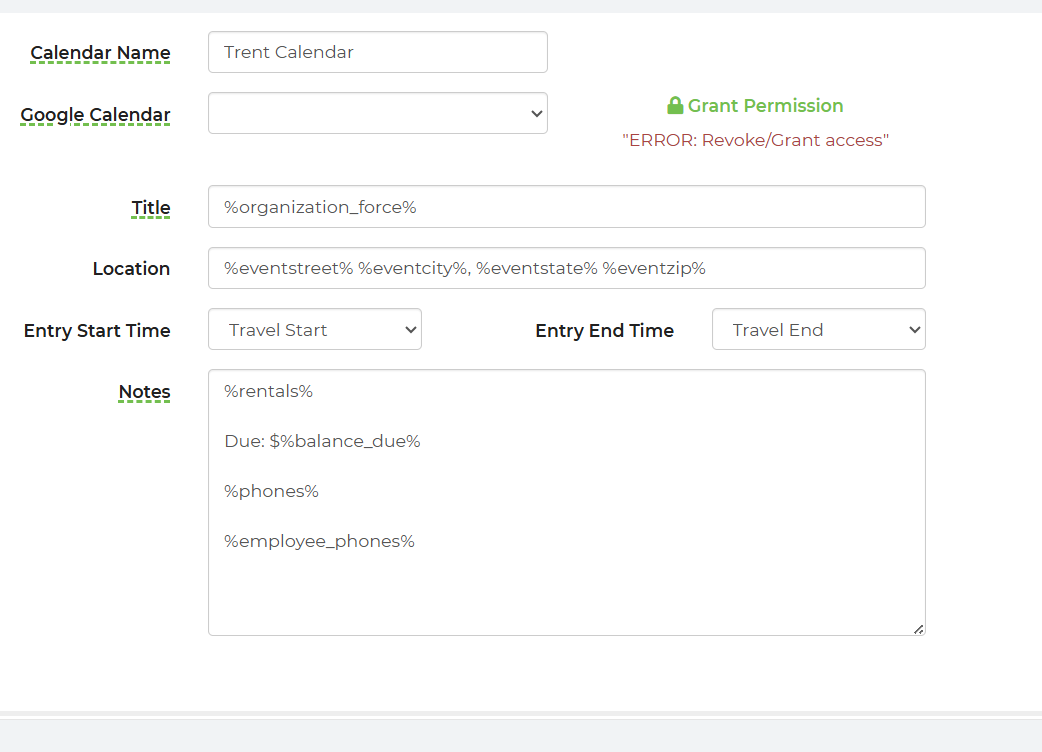 i was trying to change the template for the google calendar. it will not allow me to grant permission. is the google calendar now only part of the paid CRM subscription and no longer allowed for versions without CRM?