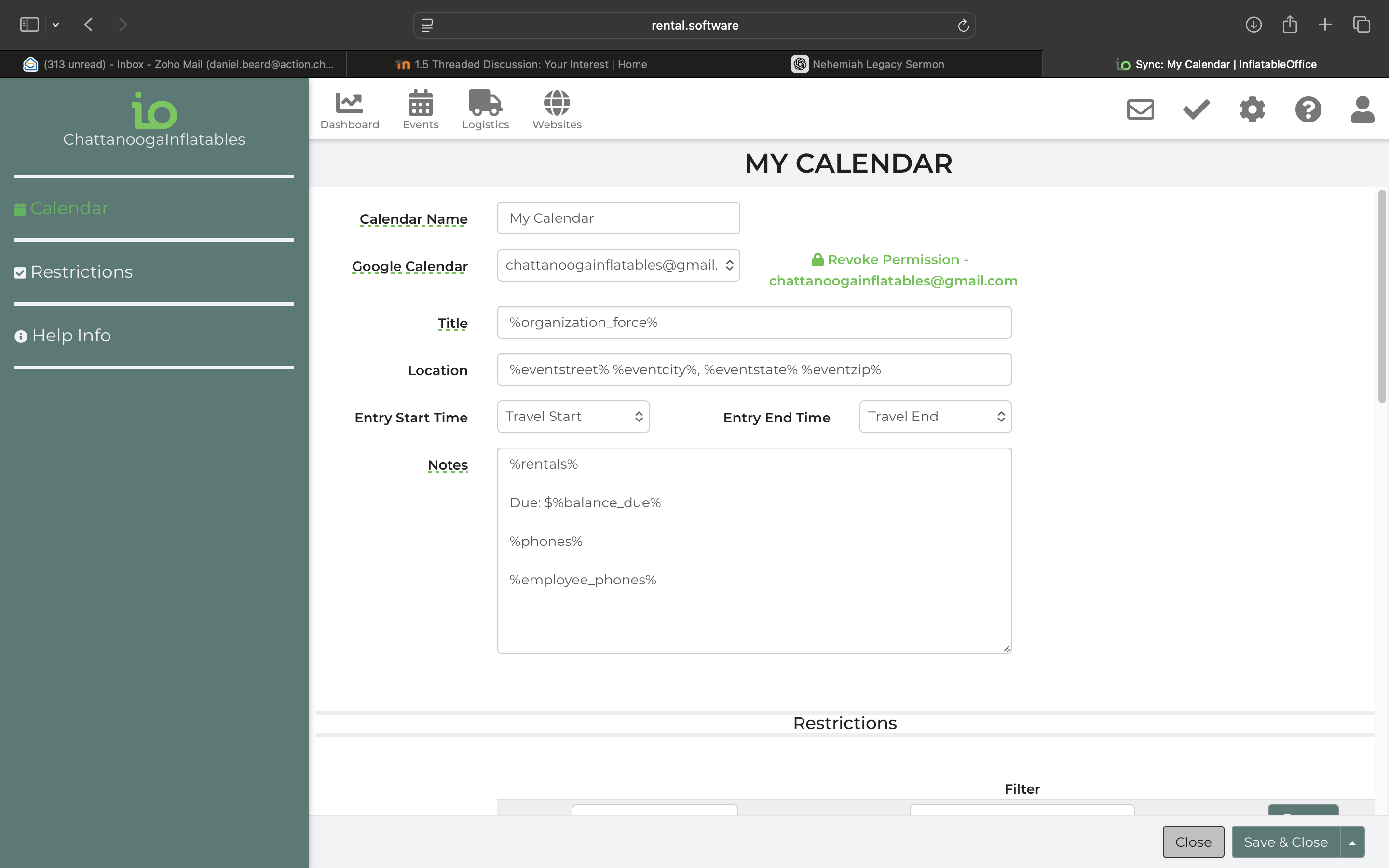 So this evening once I got home, I followed the instructions by logging in and clicking the link. However nothing is red. I looked and sure enough though something that had got contracted today wasn't on my google calendar so I revoked its permission. And granted access again and went thru the steps to receive a 2nd email at 11:30 tonight saying the same thing. Help me get my contracted and confirmed inflatable bookings back to my google calendar please.