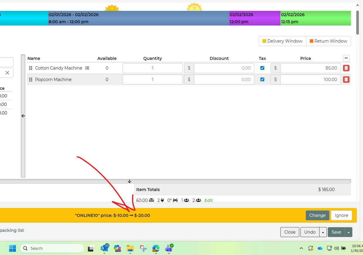 I was putting together a booking. I tried using the coupon code for $10 off "Online10" but it keeps suggesting -$20. Is it taking 10 off each item? I want $10 off the total.