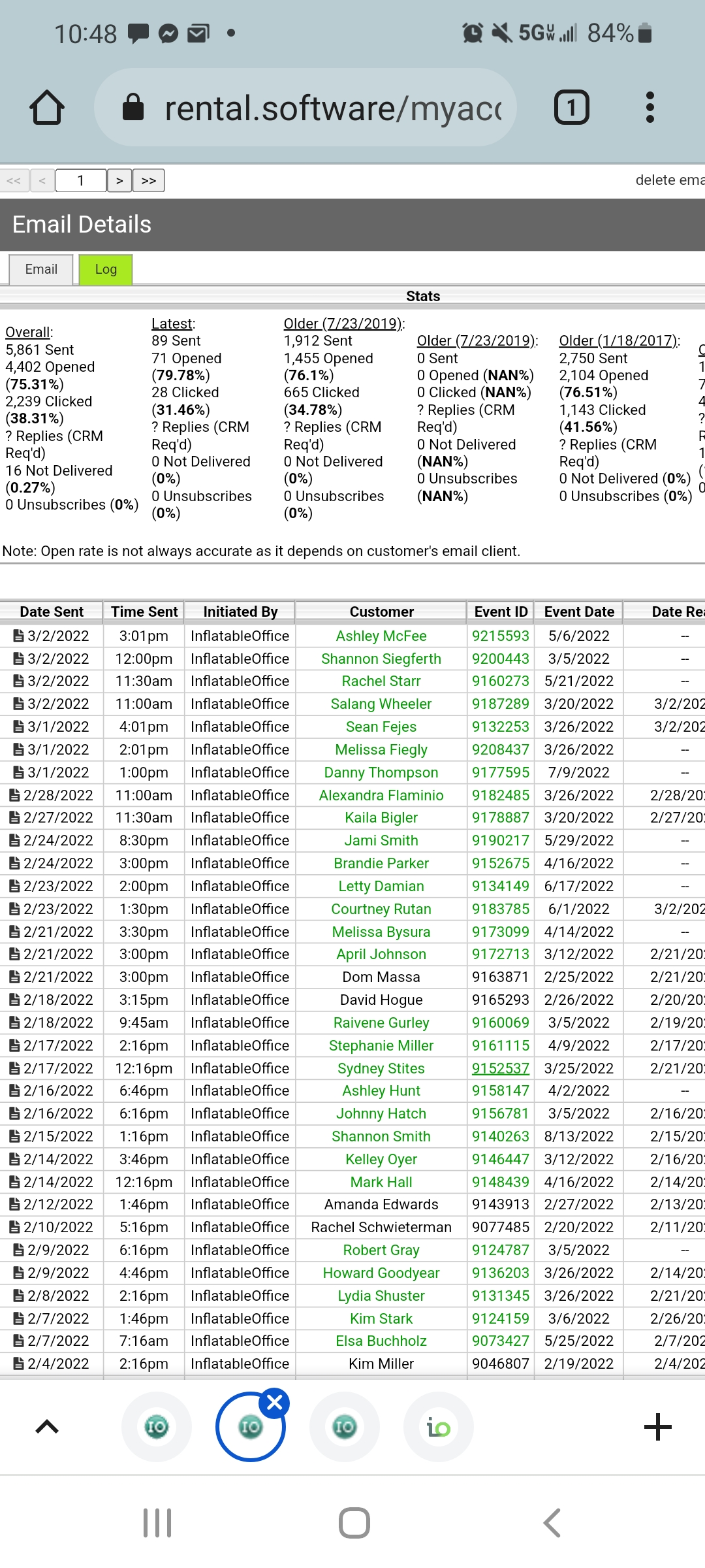 After a deposit is paid, generally, an auto email goes out called "deposit paid". Here's the log from both the customer log and auto email log.