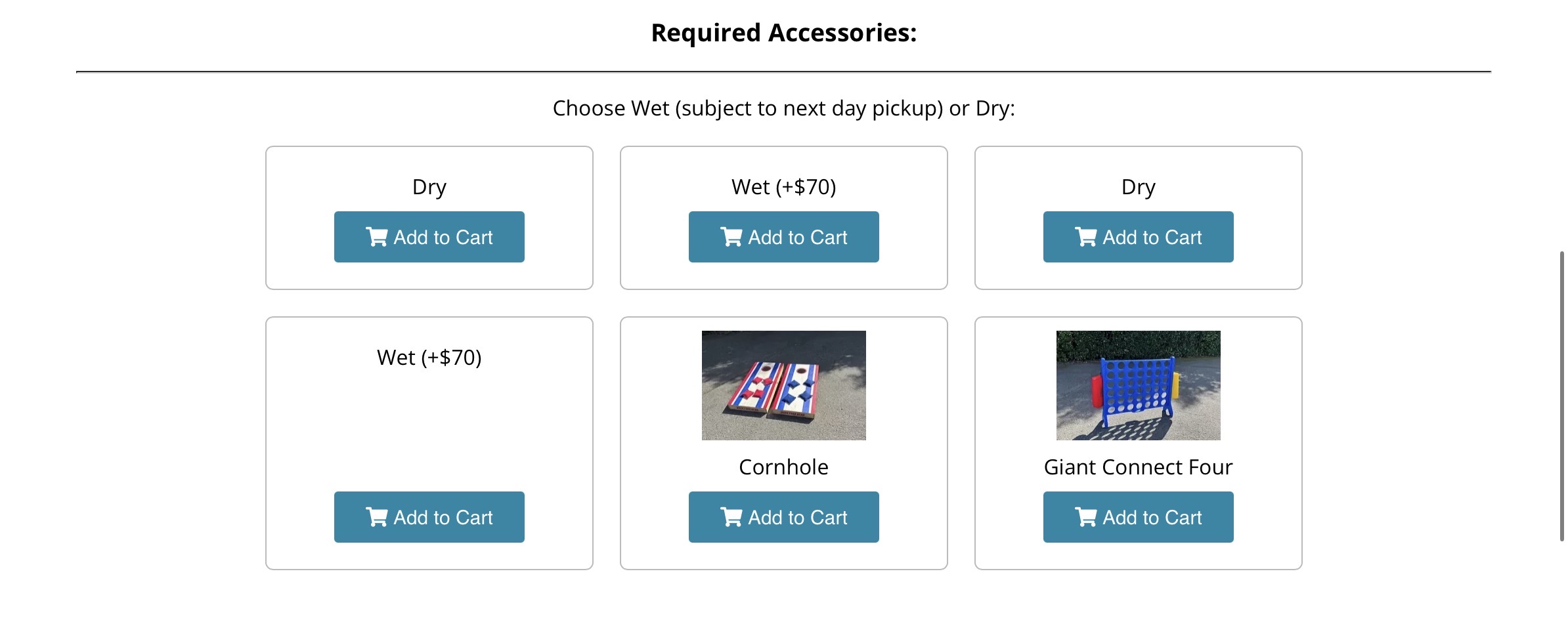 Our inflatables that can be optioned wet or dry cannot be added to customers carts. I also noticed today that the wet and dry options show up multiple times on an item. I don’t recall messing with any of it o not sure where to even start.