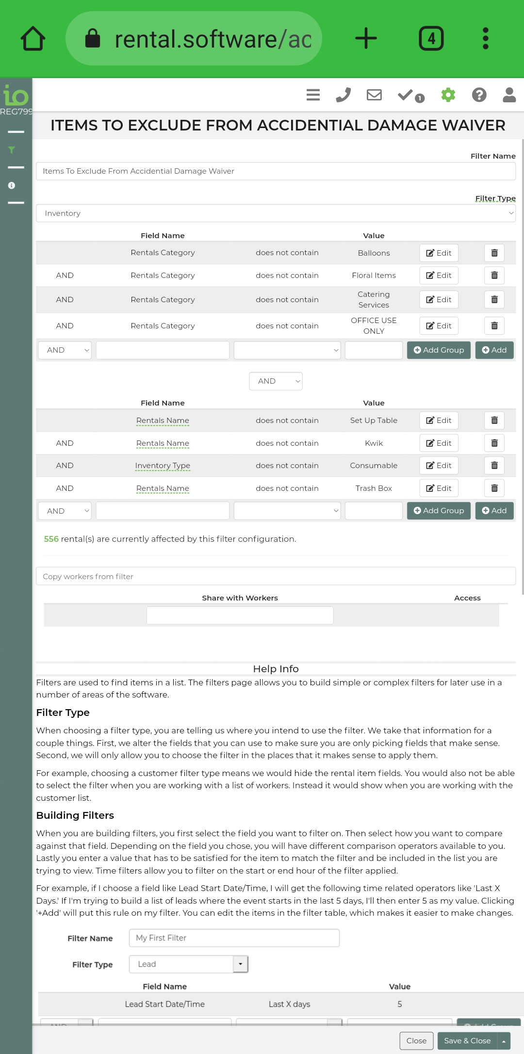 Here is an exclude filter we use to exclude items from Additional Damage Waiver