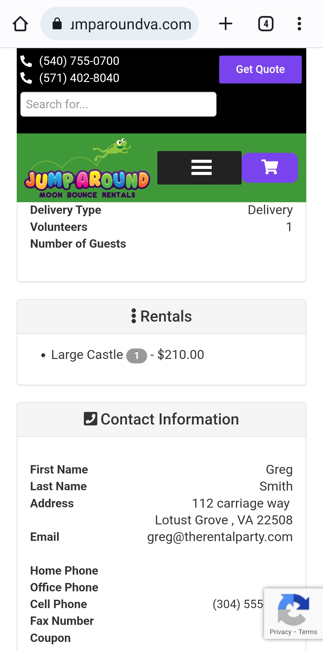 Customer cannot make quotes or orders on site