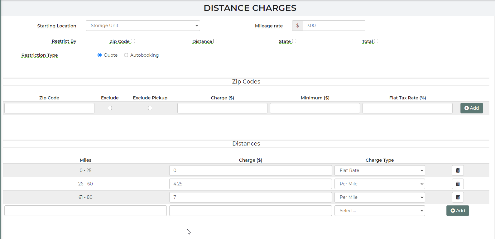 Distance Charges not Calculating