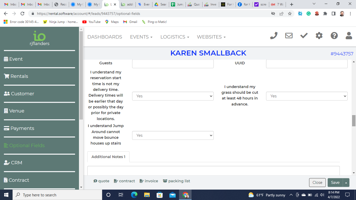 additional fields on quote page