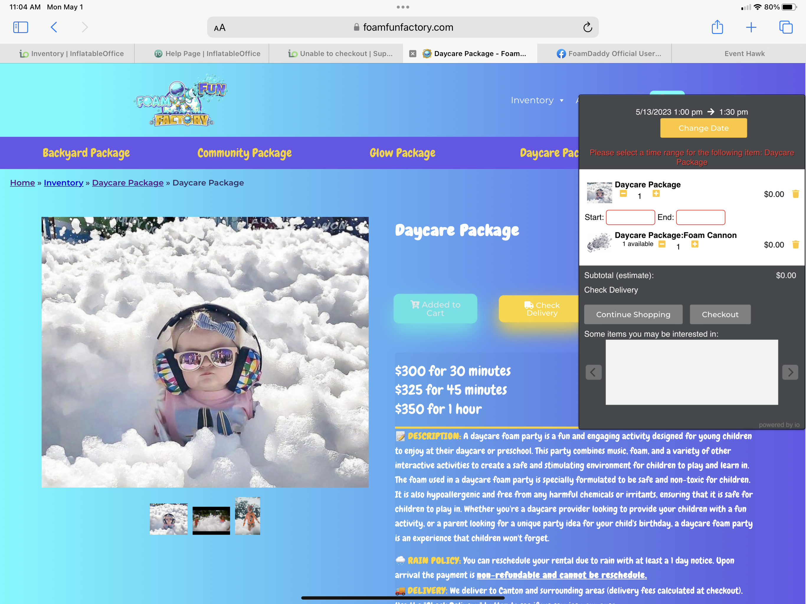 I’m getting a prompt to enter a start and end time on my daycare package for my foam fun factory website. This shouldn’t display. I check the timeslot area and there is nothing setup for this. See screenshot. Please remove, thanks in advance.