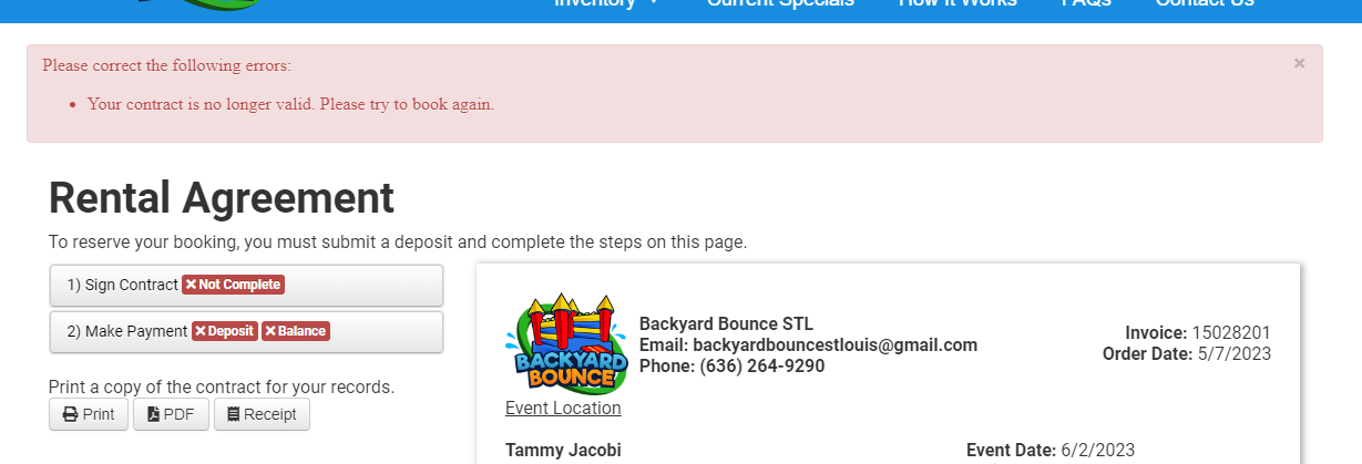 I'm trying to book this lead that would normally be restricted from online booking due to my settings (weekday rental and too close to another event). I have moved this lead's status to "Contracted" which usually allows a client to book, however, they are still restricted and unable to complete the deposit. The quote page states that someone will reach out to them shortly, the contract page says the contract is expired. How can I book this client?