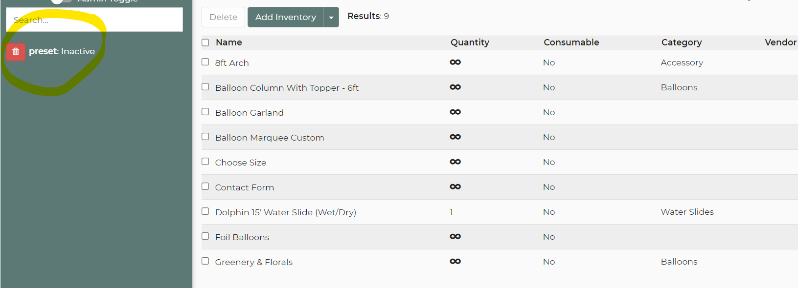 Inactive Inventory Not Showing