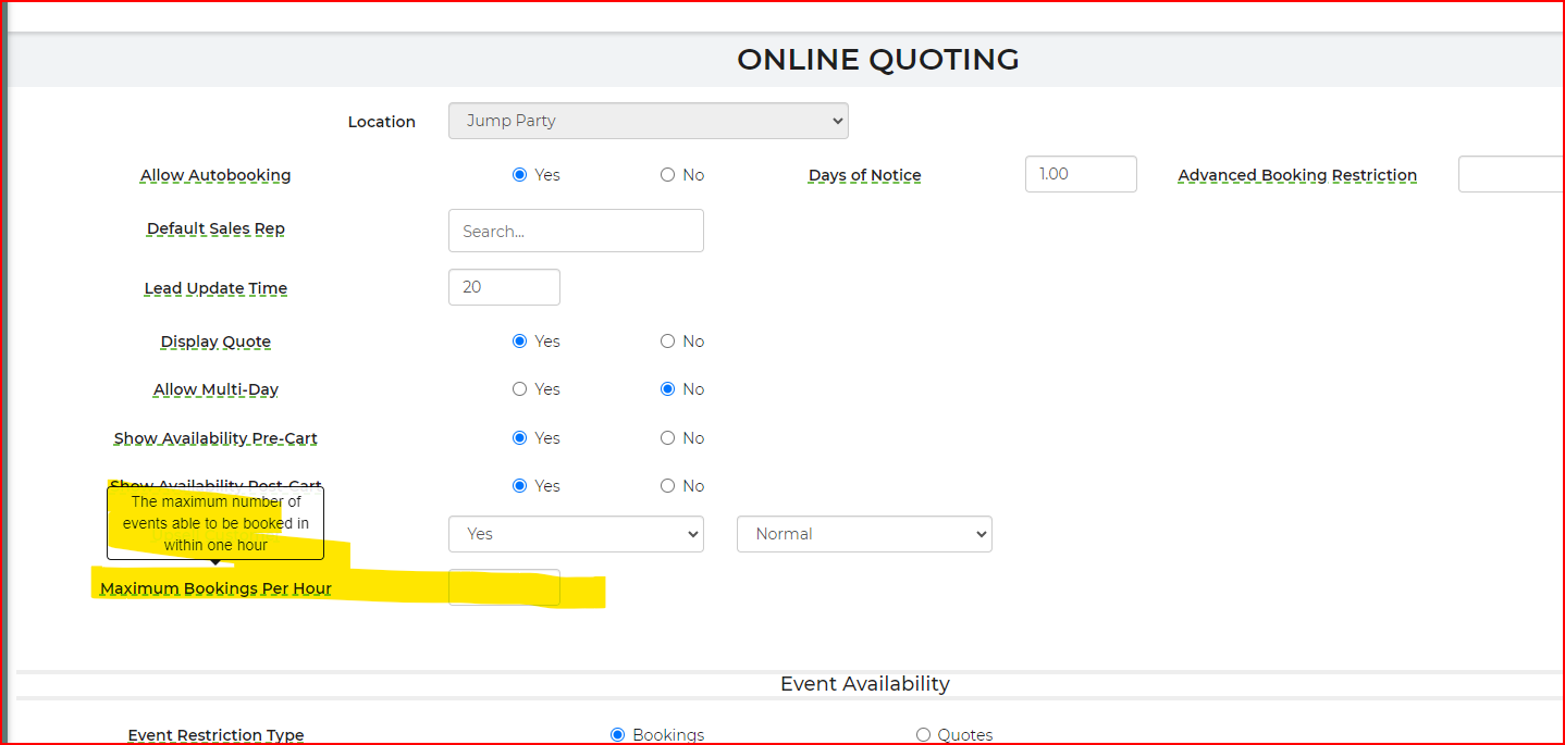 Go to your Settings-->Online Quoting and you can set up the number of bookings per hour. (see screenshot)