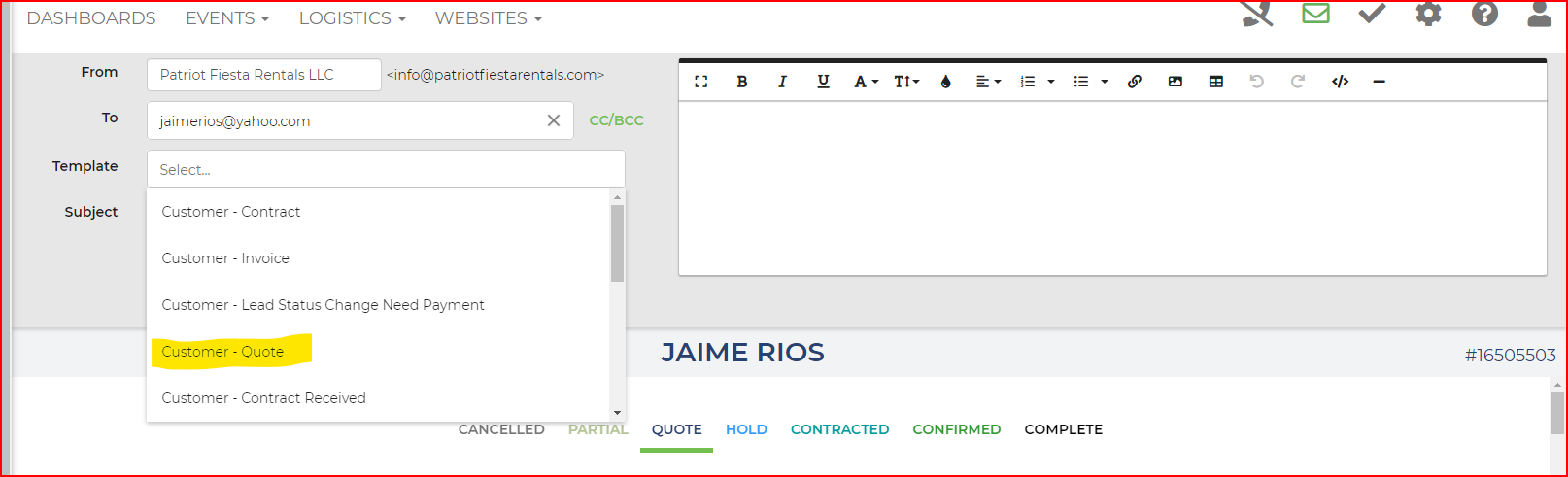 Ok so you’ll have to dumb it down for me bc this is basically my first customer and someone who came to my front door bc they saw the inflatables in my front yard. At this point what do I need to do to have him see a quote? What do I need to do in the future to send quotes? And when I send a quote, what do they see exactly? Do they click on something to have it turn into a contract or is it better just to have the client in “contracted” status and email a contract? Thanks for your help.