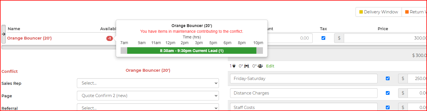 Yes I understand for leads ... but a damaged piece of equipment will impact existing contracts already booked. This forces us to check every lead/contract daily. Can you add a conflict feature without having to check individual jobs?