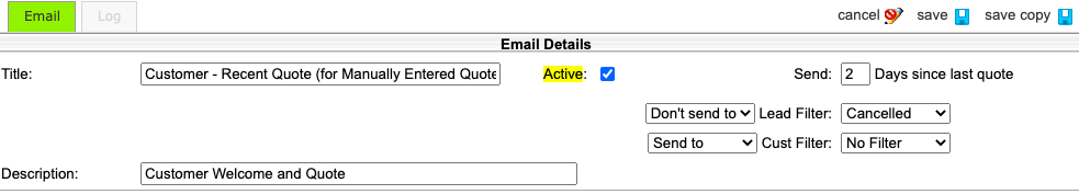 I have an email that somehow was saved as an automatic email, but we want these to go out only when staff enter a quote. How would I go about un-automating the email so that it doesn't go out until it's manually sent? Thanks!